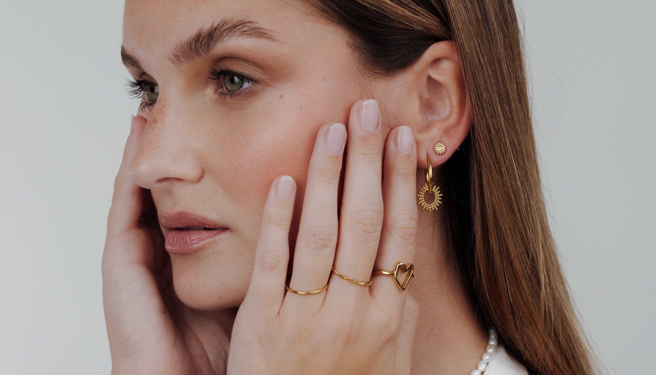 Earrings can create a completely new effect depending on how they're styled. For everyday wear, simple stud earrings in silver or gold are ideal and go with any outfit. For special occasions, we recommend hoop earrings with stones or pearls, which add a touch of extravagance. Those who dare to make a statement can wear larger designs, ensuring that the earrings become the highlight of the entire look. Huggies are another trend that's suitable for many occasions and gives every face a modern look.