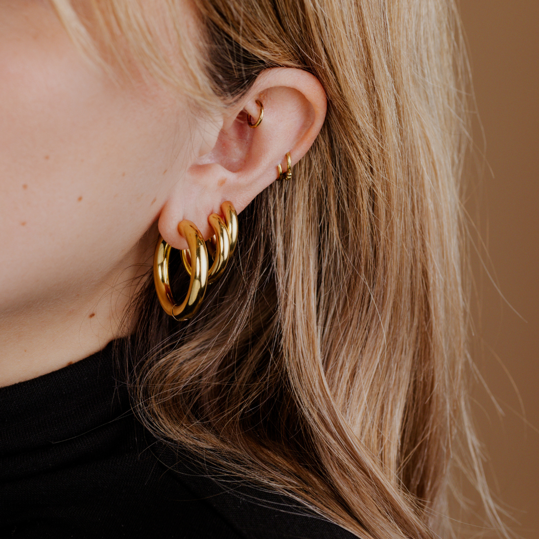 By combining several colors, you can reinvent your look every day. Many people love wearing gold and silver hoops in a mix, as this creates a modern and unique style.
