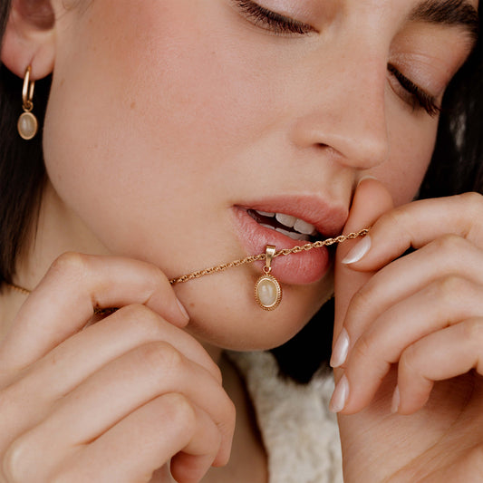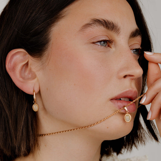 Tiger's Eye Oval Links Necklace Set Rose Gold