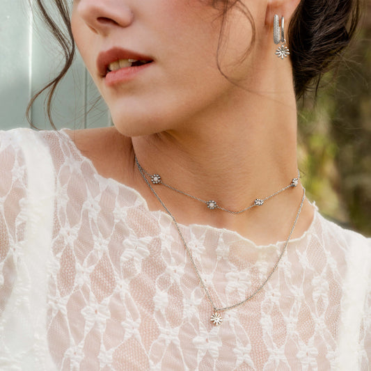 Flower 'n' Beads Necklace Silver