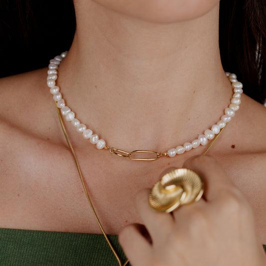 Fluidity Pearl Necklace Gold