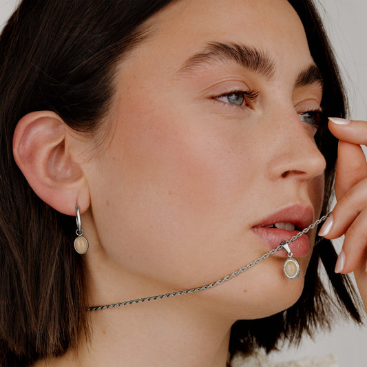 Opaline Oval Links Necklace Set Silver