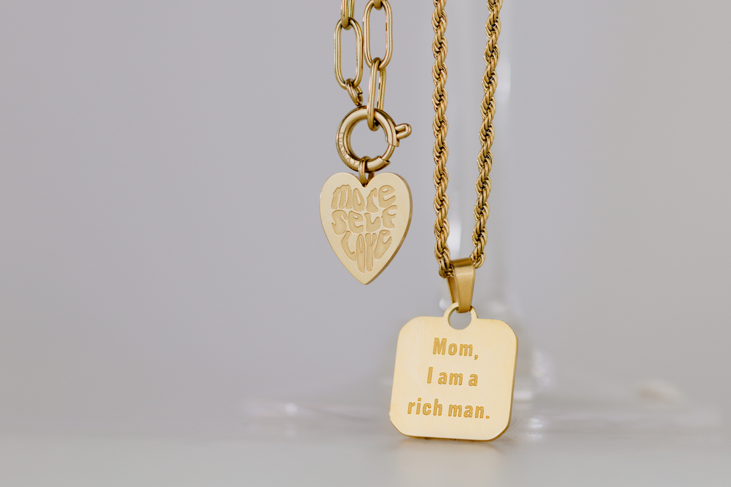 In this category, you'll find jewelry that already features engraved messages. These messages motivate, inspire, or remind you of special values. It could be a word that gives courage, a symbol of love, or a small reminder for difficult days. Because these messages are permanently engraved, the pieces have a particularly high-quality and emotional appeal. They are ideal if you want to tell someone how important they are to you. All products are made of 316L stainless steel and are therefore robust, waterproof, and colorfast.