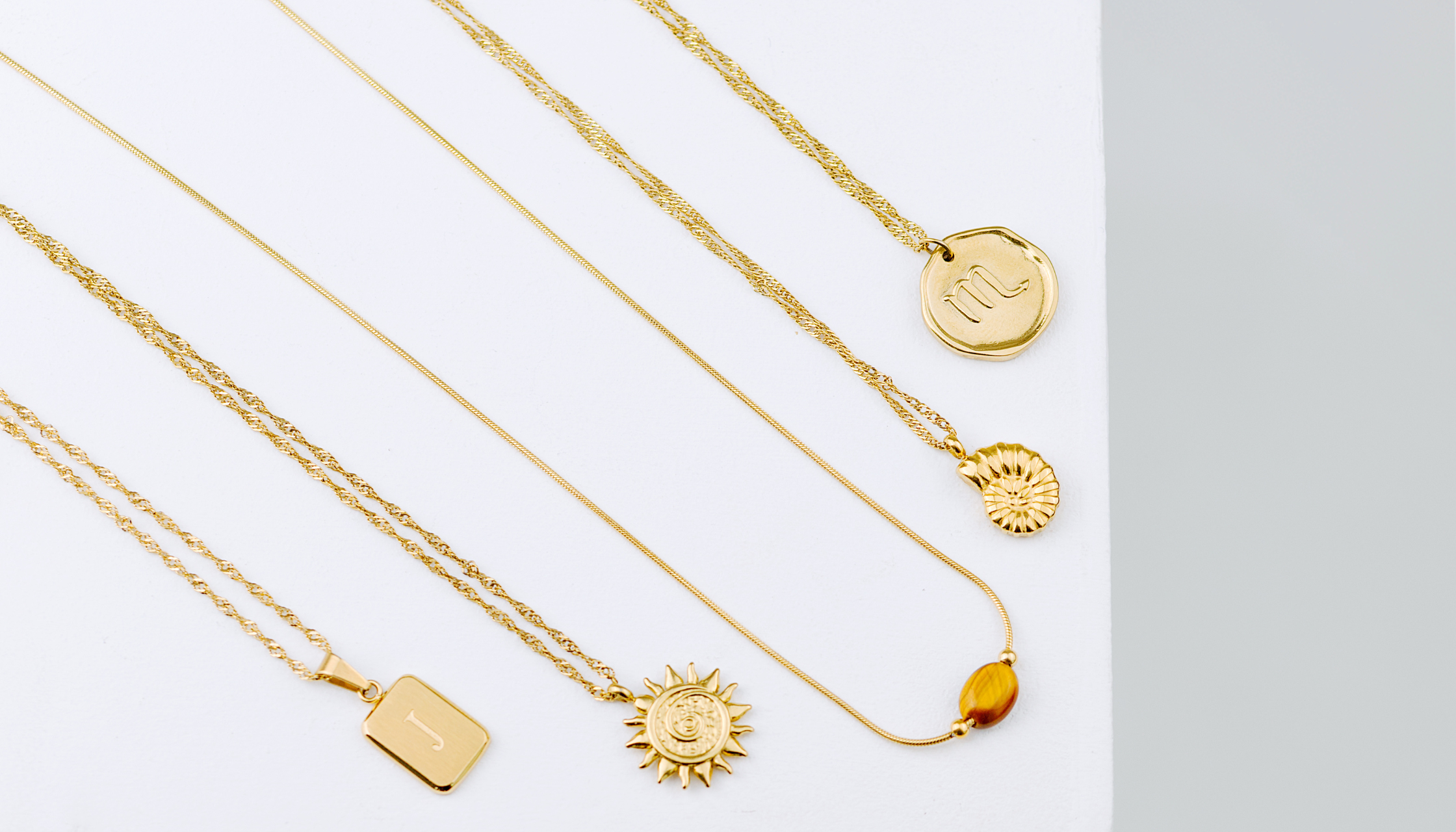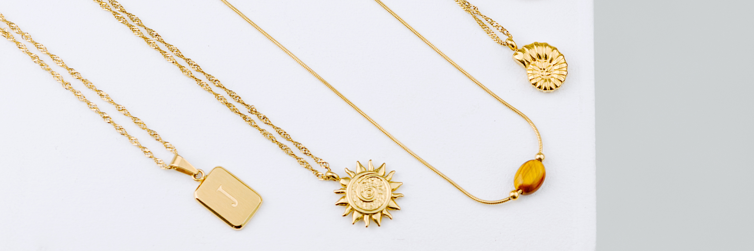 Our jewelry is made of 316L stainless steel, finished with 14K gold plating or rose gold. Many pieces are additionally set with gemstones, freshwater pearls, or cubic zirconia, giving each piece an individual look.