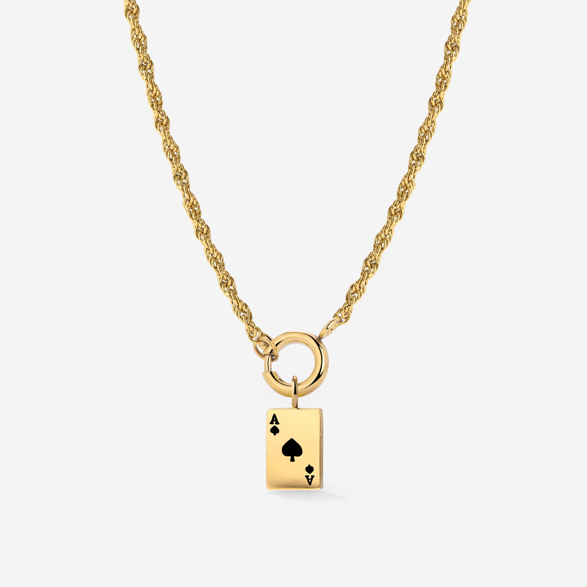 In vielen Kulturen steht die Pik-Ass Spielkarte schon seit Jahrhunderten für Glück und Reichtum und unser “Aced” Rope Chain Necklace Set ist der perfekte kleine Glücksbringer! Trage den süßen Ass-Charm mit der schmalen, getwisteten Halskette immer und überall und lass dich stets daran erinnern, dass deine nächste Portion Glück gar nicht weit entfernt ist. Du hast auch einen Lieblingsmenschen, dem du alles Glück der Welt wünschst? Dann verschenk dieses süße Schmuckstück als Symbol deiner Wertschätzung damit ihr beide immer ein Stück Glück griffbereit habt!