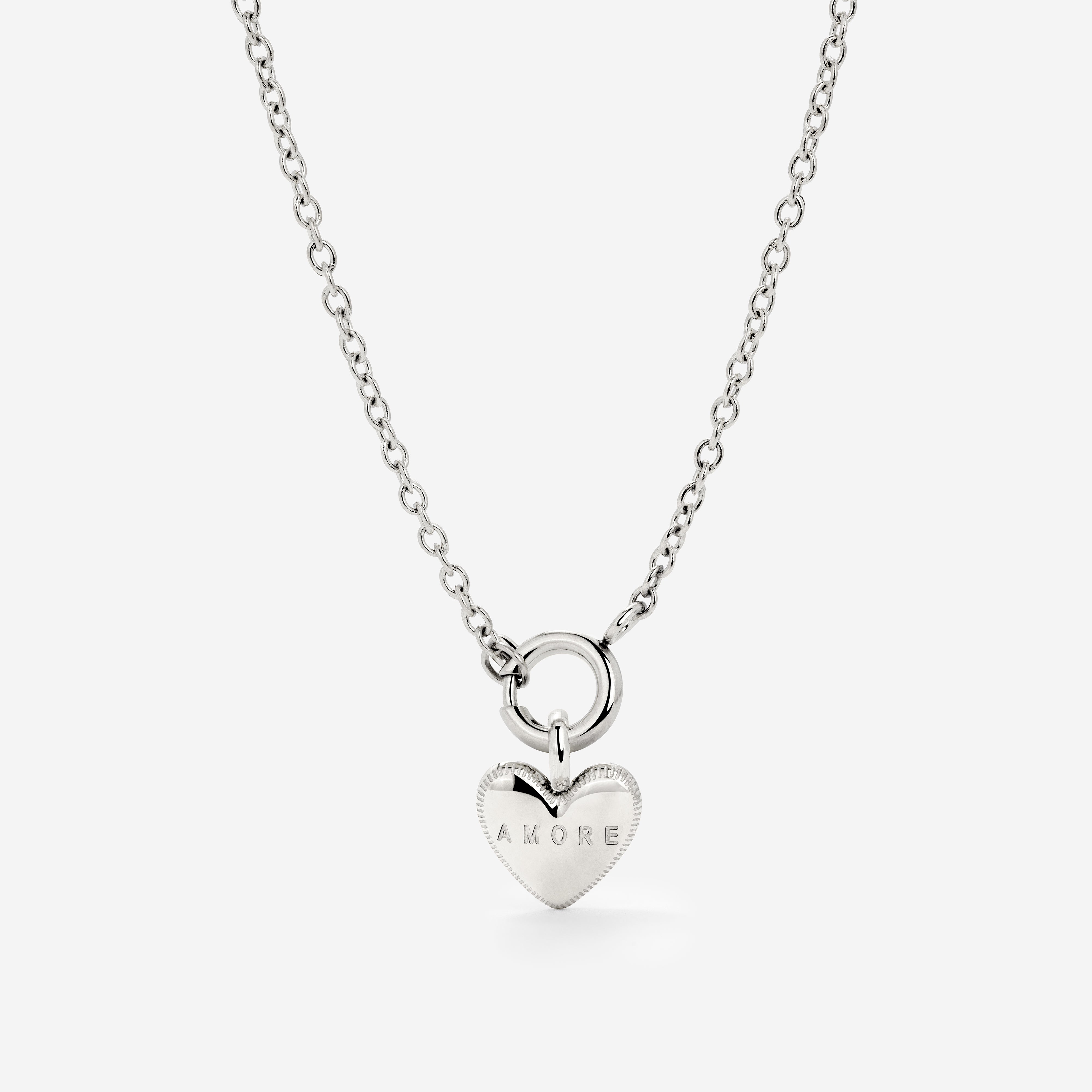 A little bit of love is always welcome—and with our 'Amore Mio' Classic Chain Necklace Set, you’ll have yours with you at all times! The sweet heart charm with 'Amore' engraving looks especially lovely on the simple O-chain and adds a playful touch to your looks. And if you love a coordinated style, pair this piece with our 'Amore Mio' Oval Hoop Set Baby—for your perfect match!