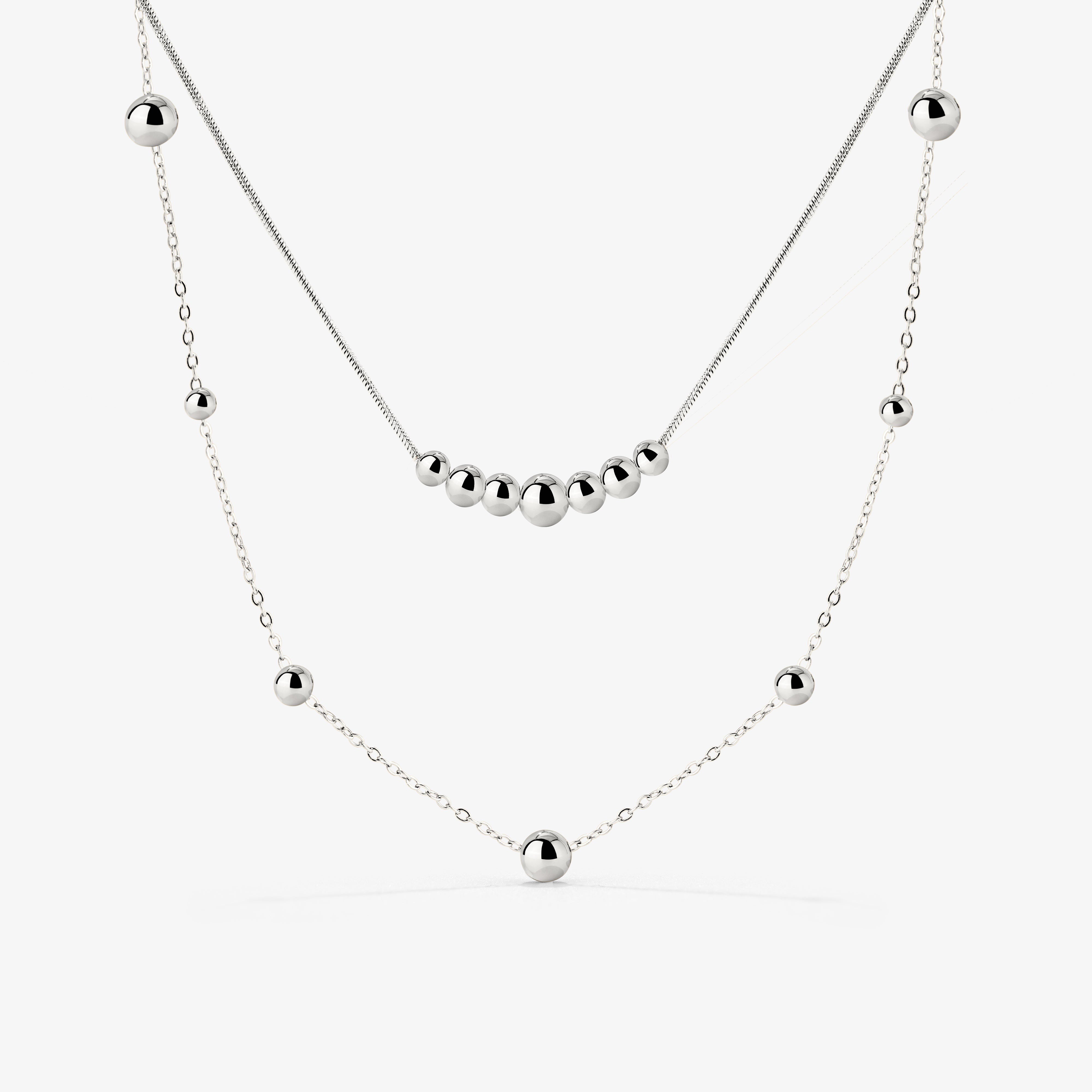 Du kriegst gar nicht genug vom Bead-Design? Dann brauchst du unser “Bead after Bead” Bundle! Hol dir unseren “Curvy Beads” Choker und unsere “Infinite Beads” Necklace gleich im Doppelpack und trage sie als passendes Set zusammen für einen süßen, aber dezenten Layerlook. Die angereihten, unterschiedlich großen Kügelchen sind das Highlight bei beiden Halsketten und ergänzen sich gegenseitig perfekt, sodass du gar nicht lange darüber nachdenken musst, was du wohl tragen kannst. Unser Bundle erledigt es ganz easy für dich!