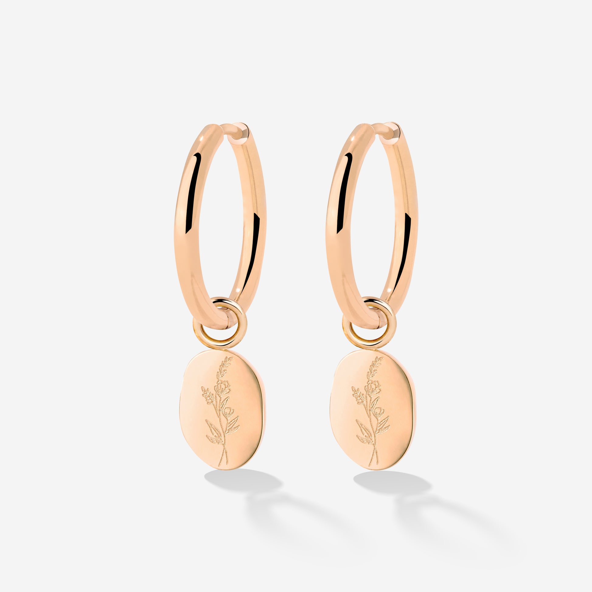 Of course, to complement our 'Bouquet Coin' Necklace, we also offer the 'Bouquet Coin' Hoop Set in size Medium. The oval charm, adorned with delicately engraved flowers, adds a particularly fresh summer touch to any of your summer looks and looks beautiful alone or combined with other earrings. Don't hesitate any longer and give it a try!