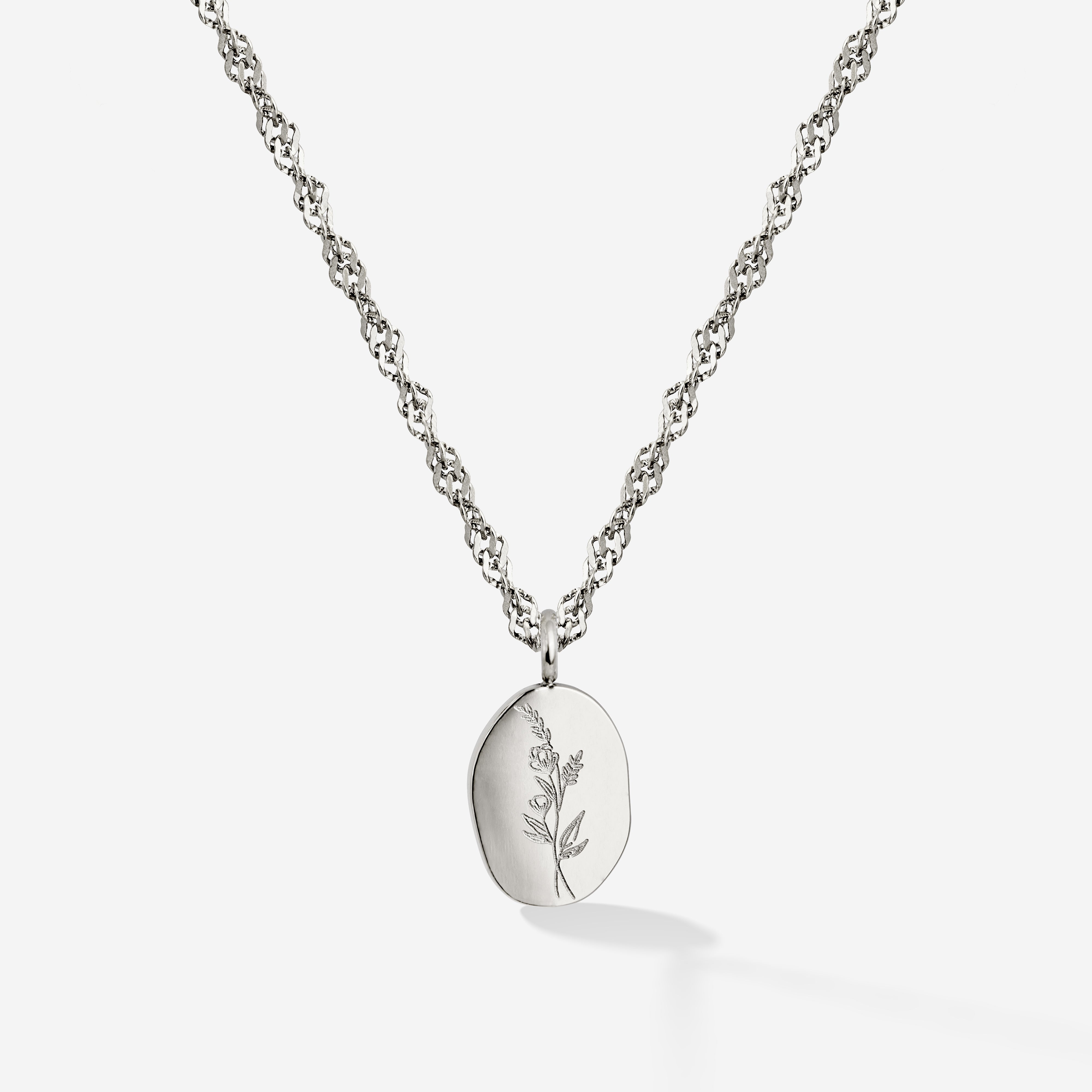 What could be lovelier in summer than enjoying a fragrant bouquet of fresh flowers, perhaps even ones you've picked yourself? Right - doing it together with our "Bouquet Coin" Necklace! The oval pendant, adorned with finely engraved wildflowers, embellishes every one of your summer looks with an especially fresh touch and looks beautiful both alone and as a layered piece combined with other necklaces. Don't hesitate any longer and try it out now!