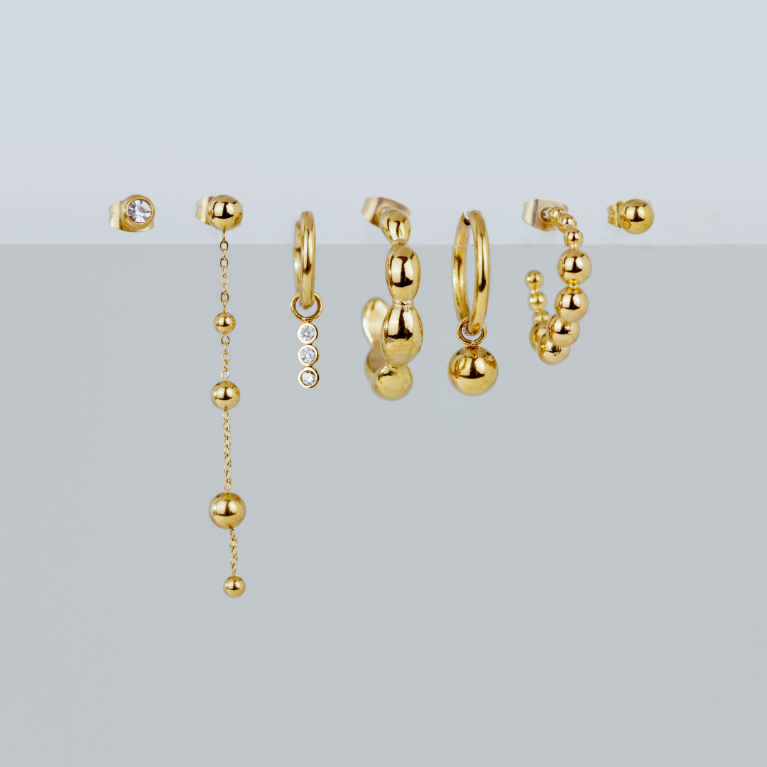 Kugelelemente sind das Highlight dieser Kollektion und unser “Bubbly” Hoop Set Medium ist davon keine Ausnahme. Die schlichten Kreolen passen perfekt mit den kugelförmigen Charms zusammen und verleiht deinen Outfits einen modernen, trendy Touch, den du dir auf keinen Fall entgehen lassen solltest. Auch in Kombination mit unseren anderen Pieces bringt dich dieses Hoop Set zum Strahlen und erfüllt alle Voraussetzungen für die diesjährigen Herbsttrends. Für deinen perfect Match kannst du es zum Beispiel mit unserem “Bubbly” Classic Chain Necklace Set probieren!