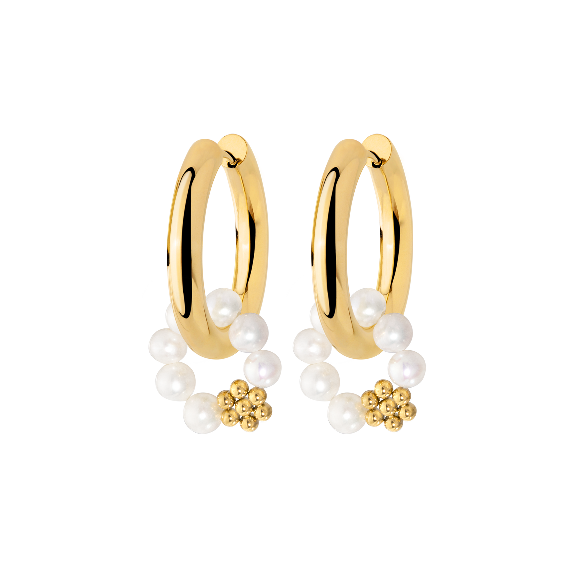 Chunky Flora Pearl Hoop Set Medium Gold