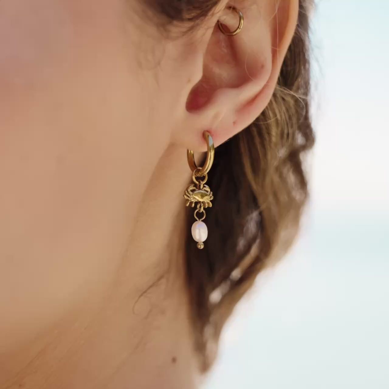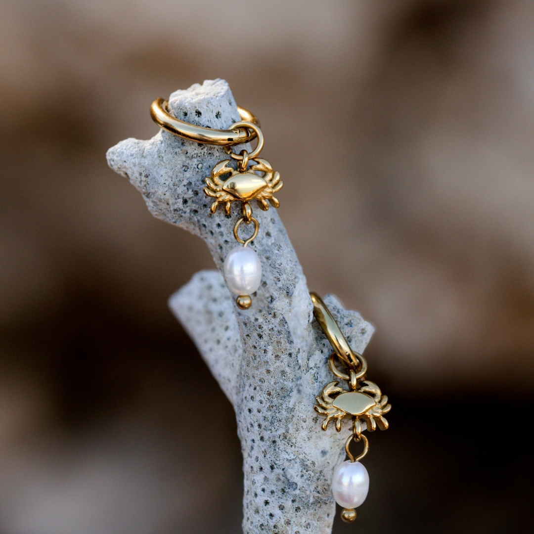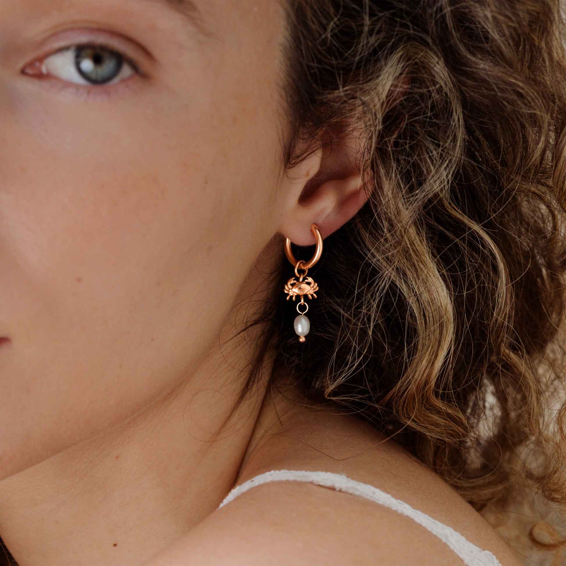 What screams summer, sunshine, and good vibes more than sea creatures? Exactly – our 'Crab Chaser' Hoop Set Small! The cute crab charms with pearls match perfectly with the simple hoops and add a trendy, maritime touch to any of your outfits – a must for your next beach party! Psst... pair them with our 'Crab Chaser' Studs for a perfectly coordinated, matchy look you won’t be able to resist.