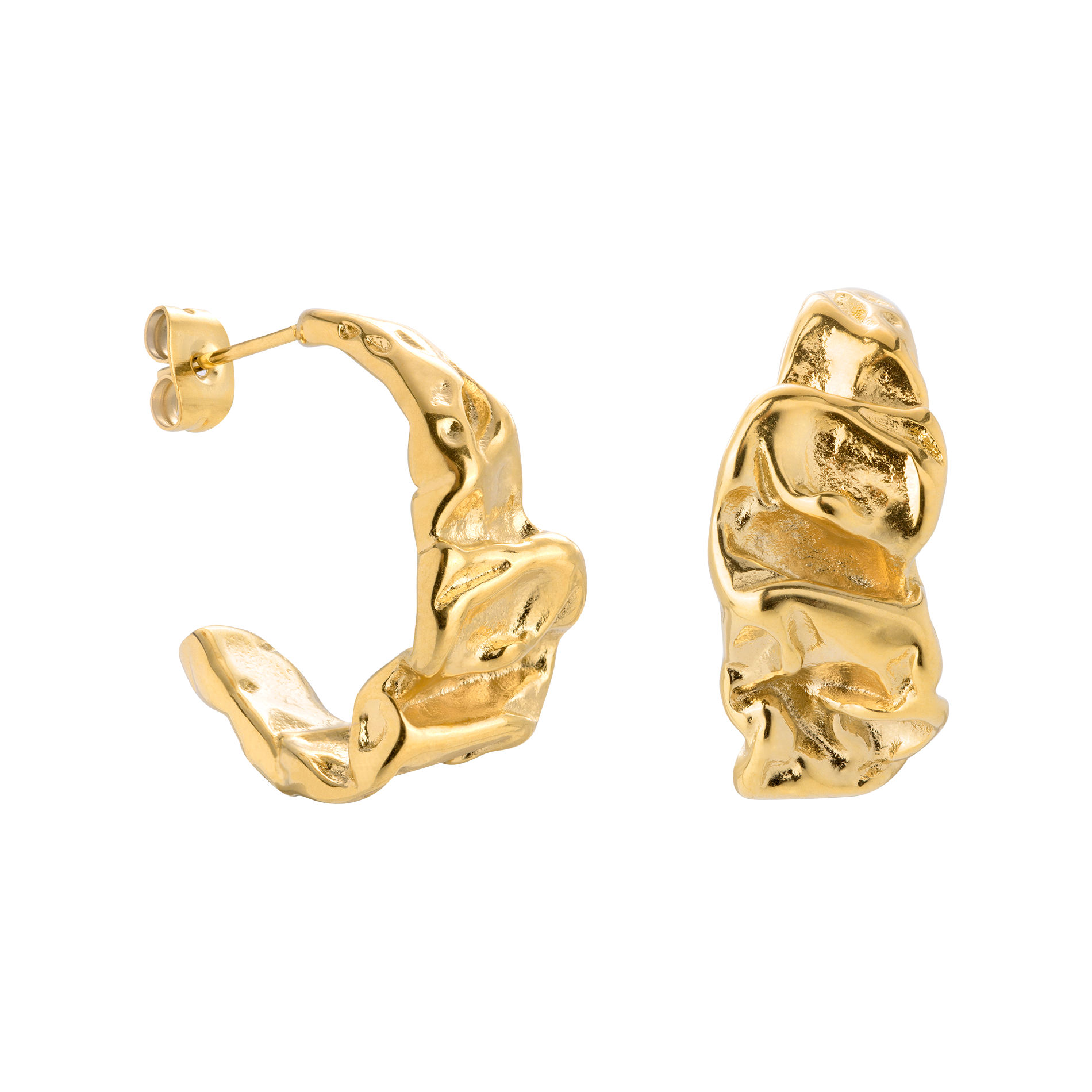 Our 'Crinkled' Hoop Studs impress with their unique design and are a must-have for your autumn look. The shape, reminiscent of crinkled foil, is trendy yet can also be styled elegantly and classically, offering you versatile pairing options. The pattern creates radiant light reflections, making this piece a true showstopper that you won’t want to miss out on.