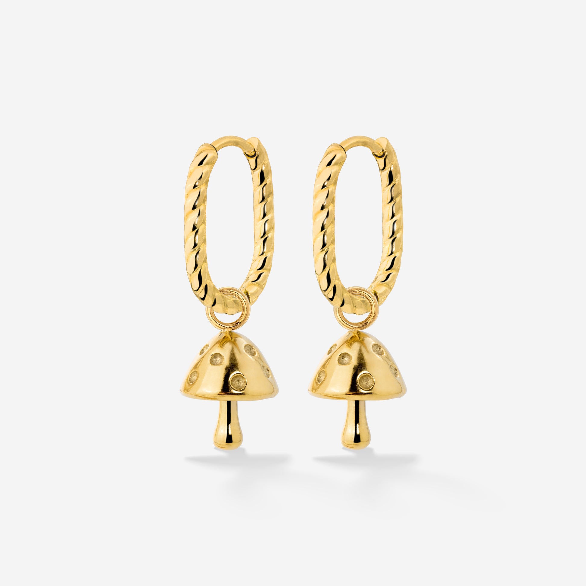 With our 'Cute Mushroom' Oval Twisted Hoop Set Baby, we’re fulfilling the dreams of all Cottagecore fans who long for a nature-inspired yet cute design. The little mushroom charm pairs perfectly with our twisted oval hoops and is a must-have in your jewelry box when you want to wear something truly different. Let this playful set enchant you and bring a bit of fairy tale forest into your everyday life!