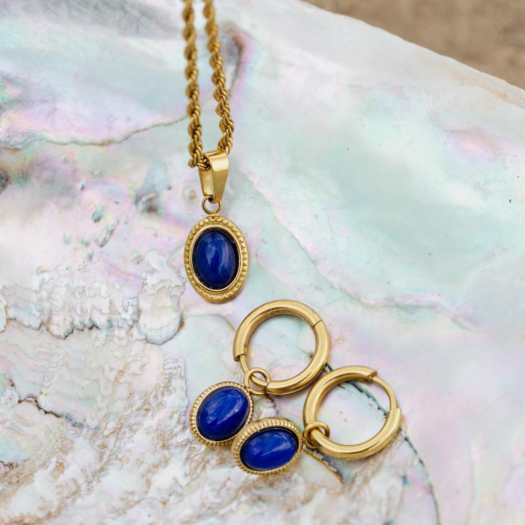 Dive into vacation vibes with our “Deep Sea” Bundle and let yourself be fully wrapped in that ocean feeling! Inspired by the balance of water, the deep blue jade stone is the highlight of both pieces, giving off a romantic and mystical vibe. Jade has long been considered a healing stone, symbolizing harmony, spiritual connection, and a deep bond with nature—and it has a rich history in various cultures around the world. The combination of the “Deep Sea” Necklace and Hoop Set Small makes getting dressed each day a breeze and is a true eye-catcher!