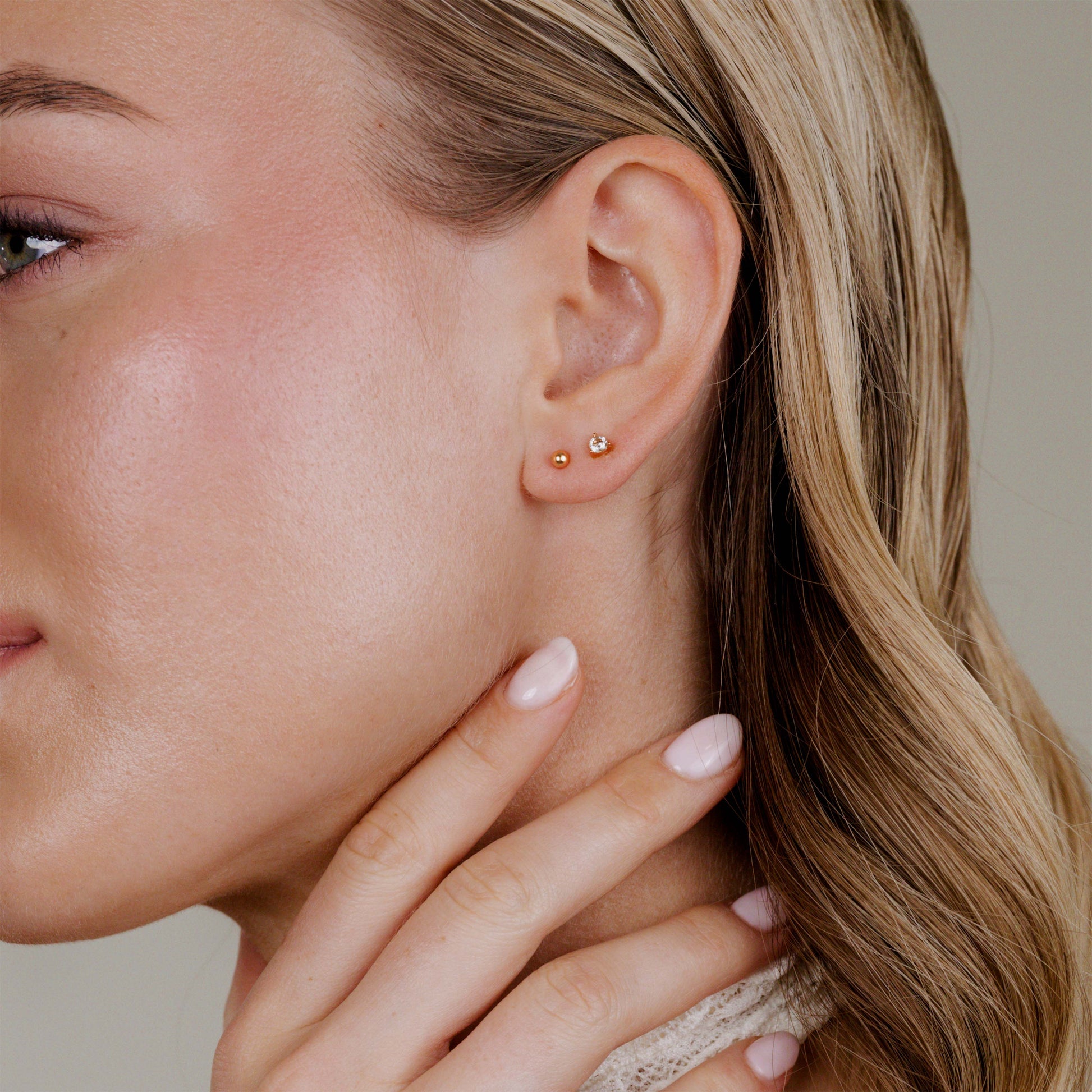 For all you minimalists, we’ve got our 'Delicate Bead' Stud Bundle, featuring our namesake 'Delicate Bead' Studs and our 'Glimmer Studs' – the perfect blend of glamour and subtle, classic timelessness. The cubic zirconia stones in our 'Glimmer' Studs add a touch of luxury to the otherwise simple bundle, giving every outfit that special something.