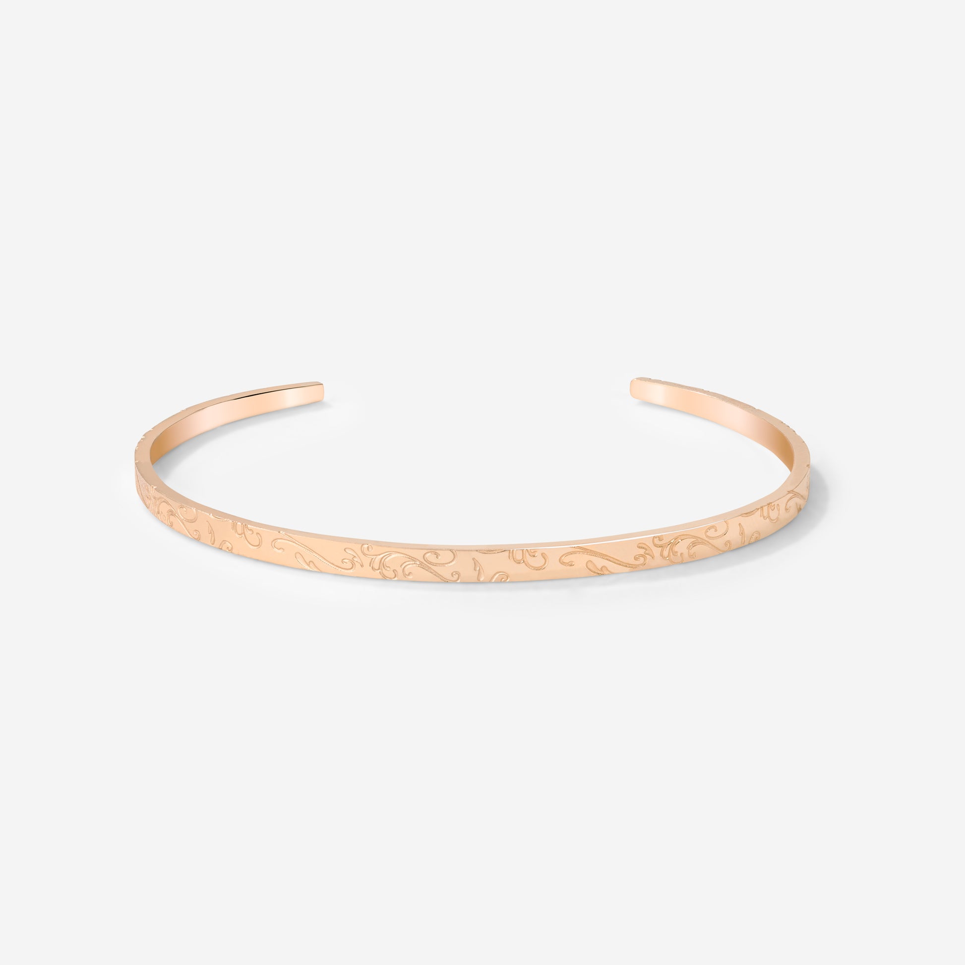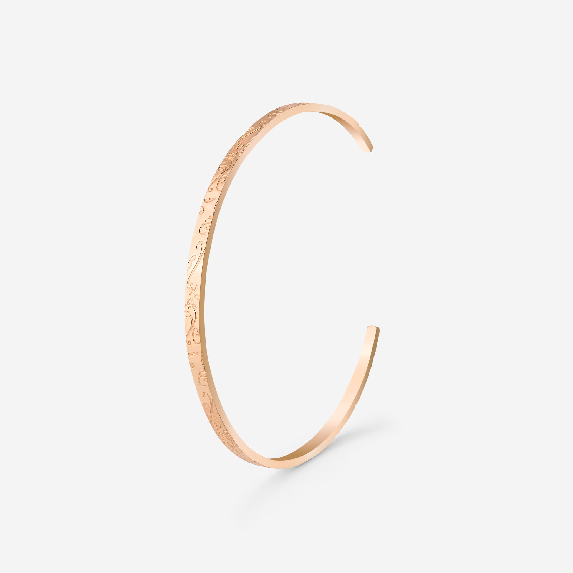 Curved, orient-inspired engravings meet a minimalist, sleek design in our “Desert Glow” Bangle! If you love wearing bracelets but want to try something a little different, bangles are just the thing for you. Thanks to the opening on one side, you can easily adjust and slide it along your arm to create new looks whenever you like. With its subtle engraved details, it pairs beautifully with all your other jewelry and can be worn both for everyday moments and special occasions!