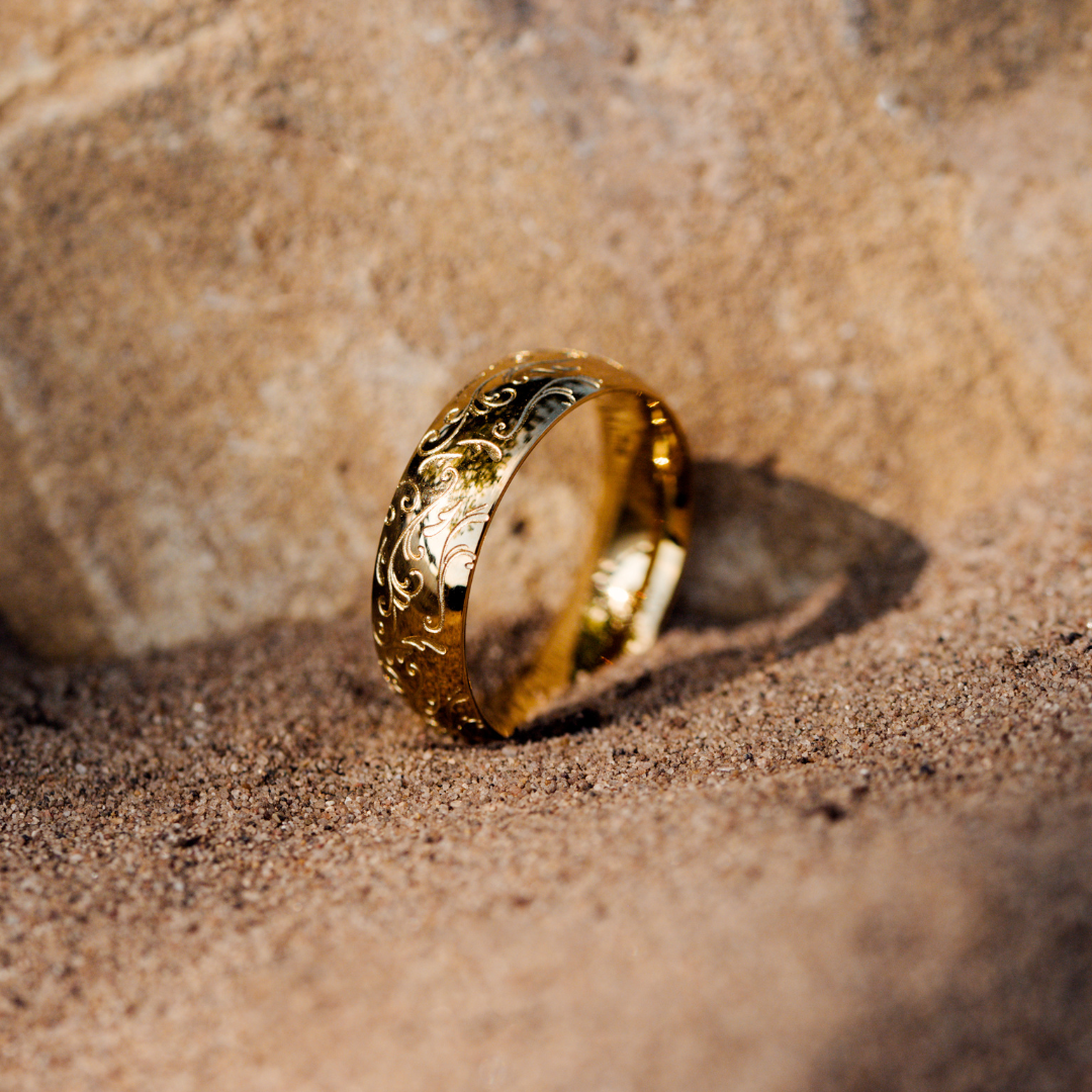 Looking for a statement ring that still feels clean and sleek? Then our “Desert Glow” Ring is just what you need! Its wider design is adorned with flowing, orient-inspired patterns that give the piece a unique and special look without ever feeling like too much. You can easily wear it on its own or use it for layering – the possibilities are endless!