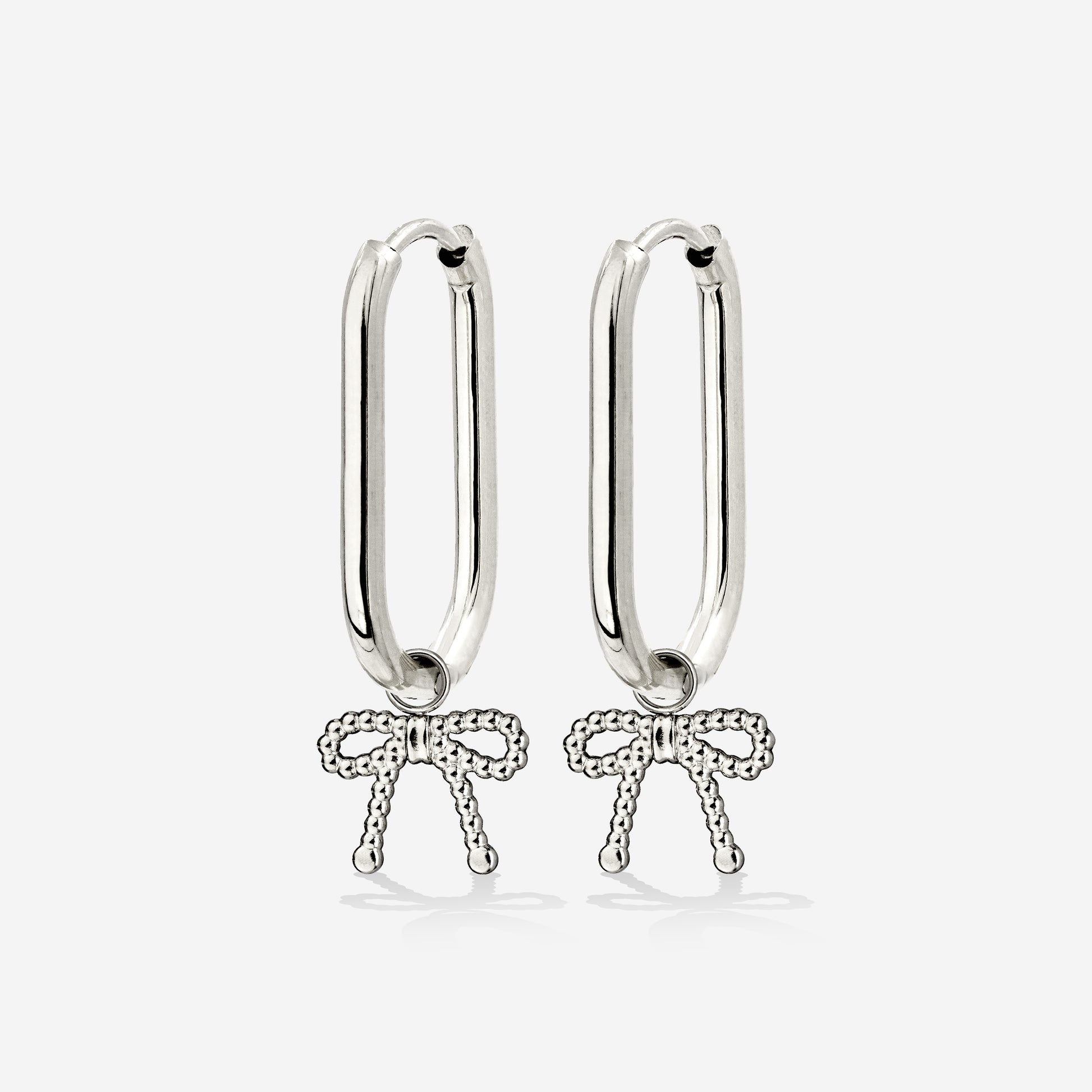 Bows in all shapes and sizes are and will always be an absolute trend staple – and we’ve got something new for all of you who just can’t get enough of them! With our 'Dotted Ribbon' Oval Hoop Set in size Small, you can easily add a cute and playful touch to any of your looks while staying totally on trend. Whether for everyday wear or special occasions, this sweet bow is a true all-rounder!