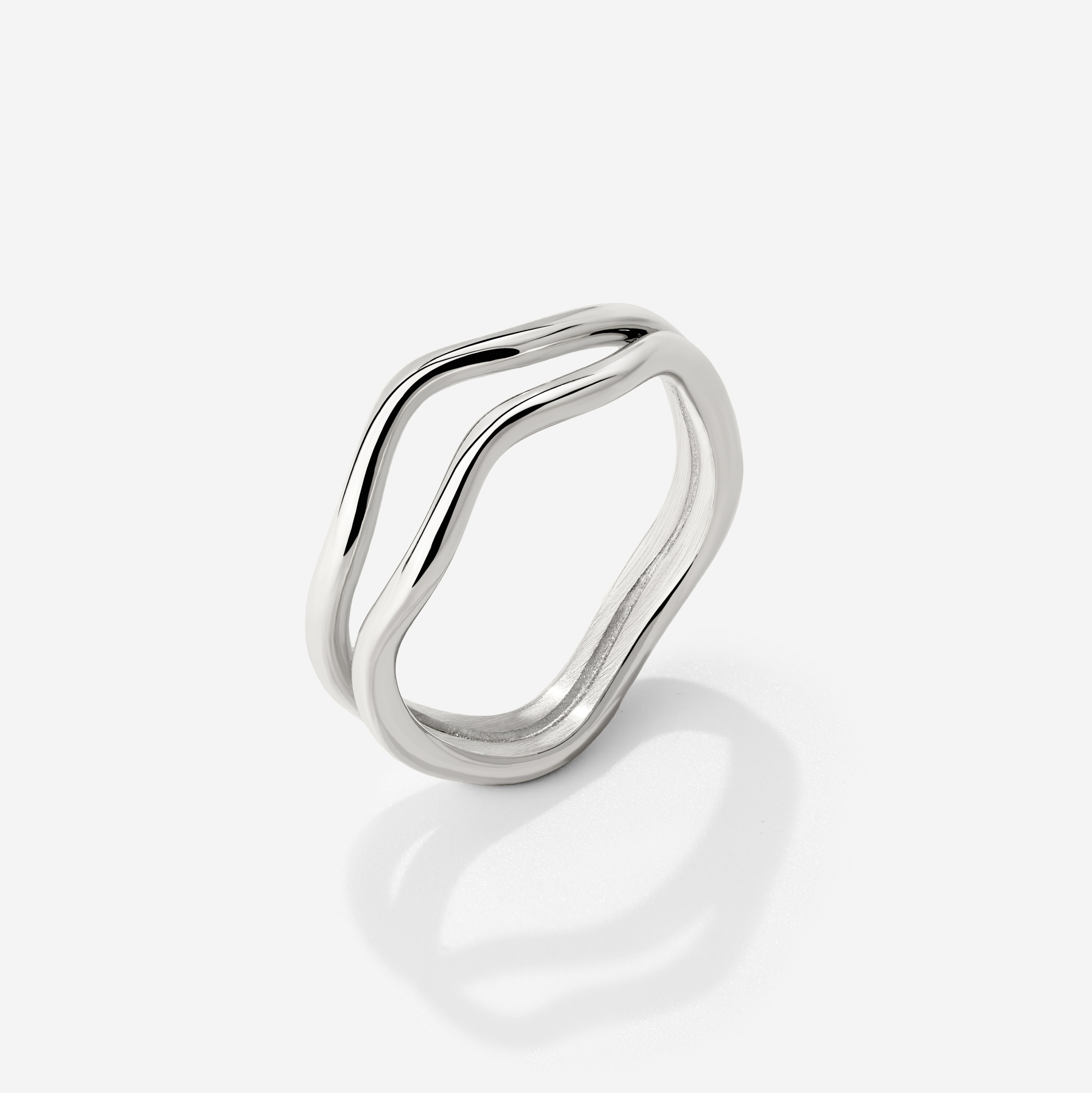 Ein Ring aber doppelt so viel Freude, das bekommst du mit unserem “Double Wave” Ring. Das raffinierte Design wirkt optisch wie zwei schmale, wellenartige Ringe, die perfekt aufeinander abgestimmt sind, obwohl du für dein Outfit nur einen Ring zusammensuchen musst - ganz easy also! Dieses Schmuckstück eignet sich besonders für minimalistische und dezente Looks, kann aber auch mit auffälligeren Statement Ringen gestyled werden und ist somit ein wahrer Allrounder.