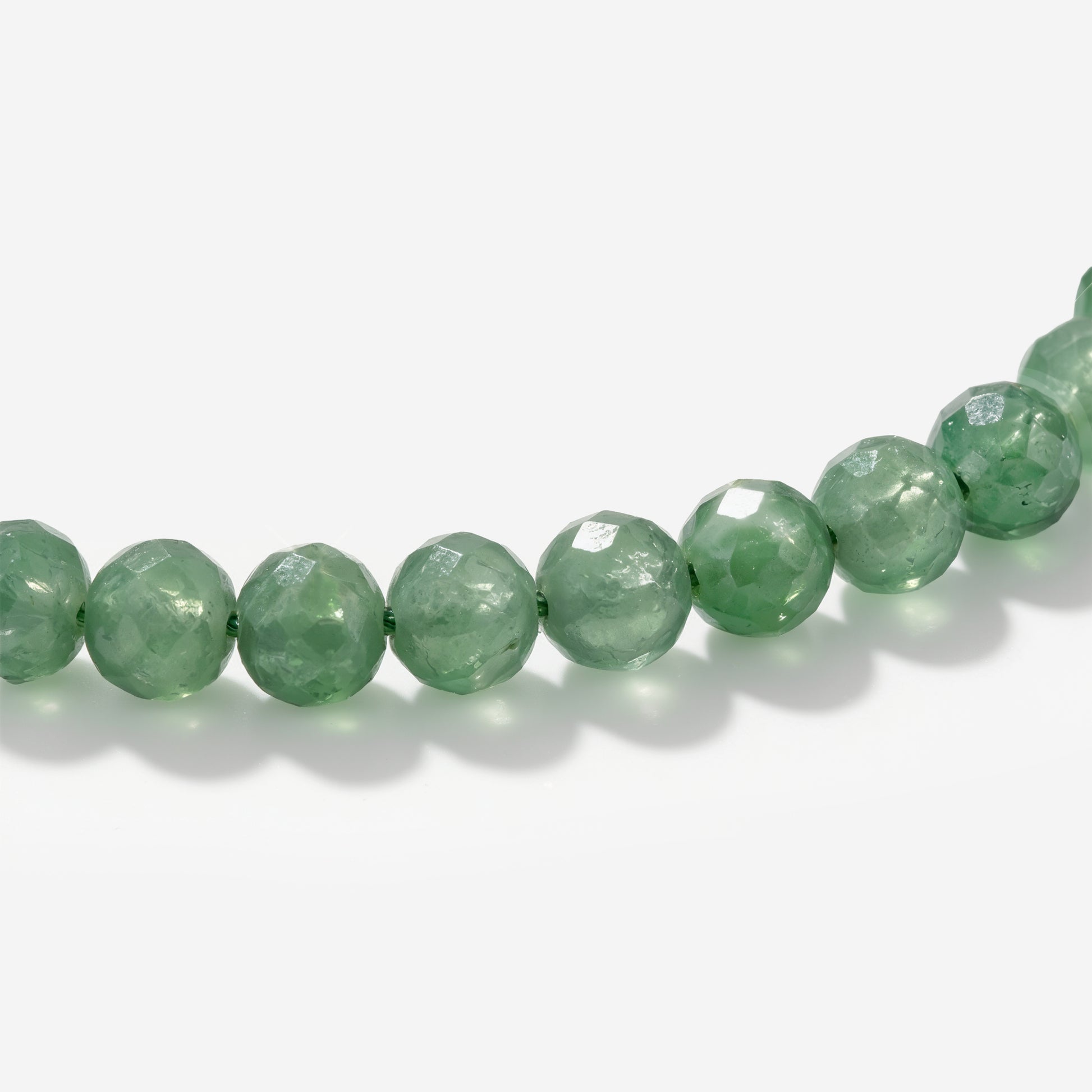 Quartz is often regarded as a stone of purity and protection and can be found in many different forms and colors in nature. Green quartz is said to promote harmony and help release emotional blockages. Our “Eden” necklace is made of small green quartz beads, whose natural color makes the necklace a unique piece of jewelry. Worn alone or layered with other necklaces, this piece is a true eye-catcher! Wear it as a little good luck charm and let the natural stones and soft green color soothe and balance you.