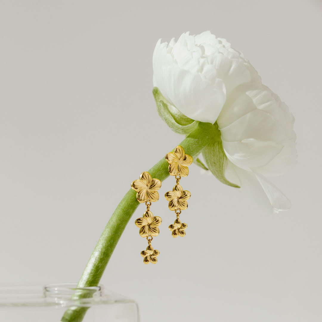Want the ultimate flower power this spring? Then our “Floral Trinity” Earrings are exactly what you need! These cute drop earrings feature three progressively smaller flower designs that add that special touch to any of your outfits. If you really want to make them stand out, wear them with an updo or with one of our trendy hair claws for a cute, playful spring look—go ahead, have fun with it!
