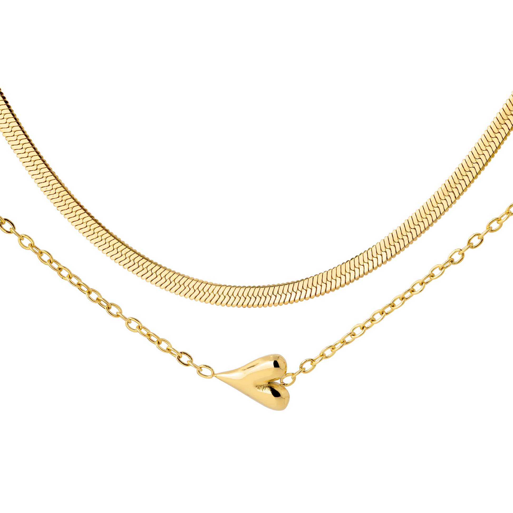 Your style is more minimalist and sleek, but you still want a little eye-catcher for festive occasions or everyday wear? Then our 'Flowy Heart' Necklace Bundle is perfect for you! Our 'Slim Herringbone' Necklace can be paired with anything thanks to its subtle design, but looks especially elegant when combined with our 'Flowy Heart' Necklace. The small heart pendant adds a playful and interesting touch to the look without overwhelming it or distracting from your outfit. Psst: This bundle also makes a great gift!