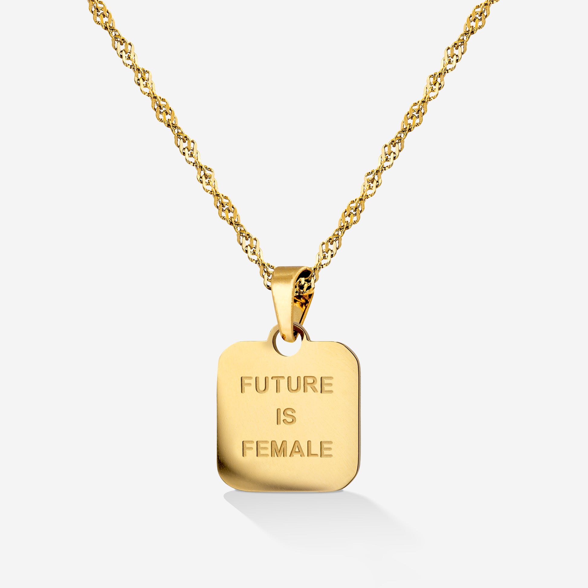 Our 'Future is female' Necklace is more than just a piece of jewelry—it makes a clear and powerful statement. Wear it as a reminder of your strength and the change you can help shape every day—for a bright and positive future. The square pendant on our Slim Singapore Necklace is timeless and minimalist, giving it an especially elegant touch. Whether worn alone or layered with our other necklaces, this piece is the perfect companion for every strong woman with vision and inspiration.