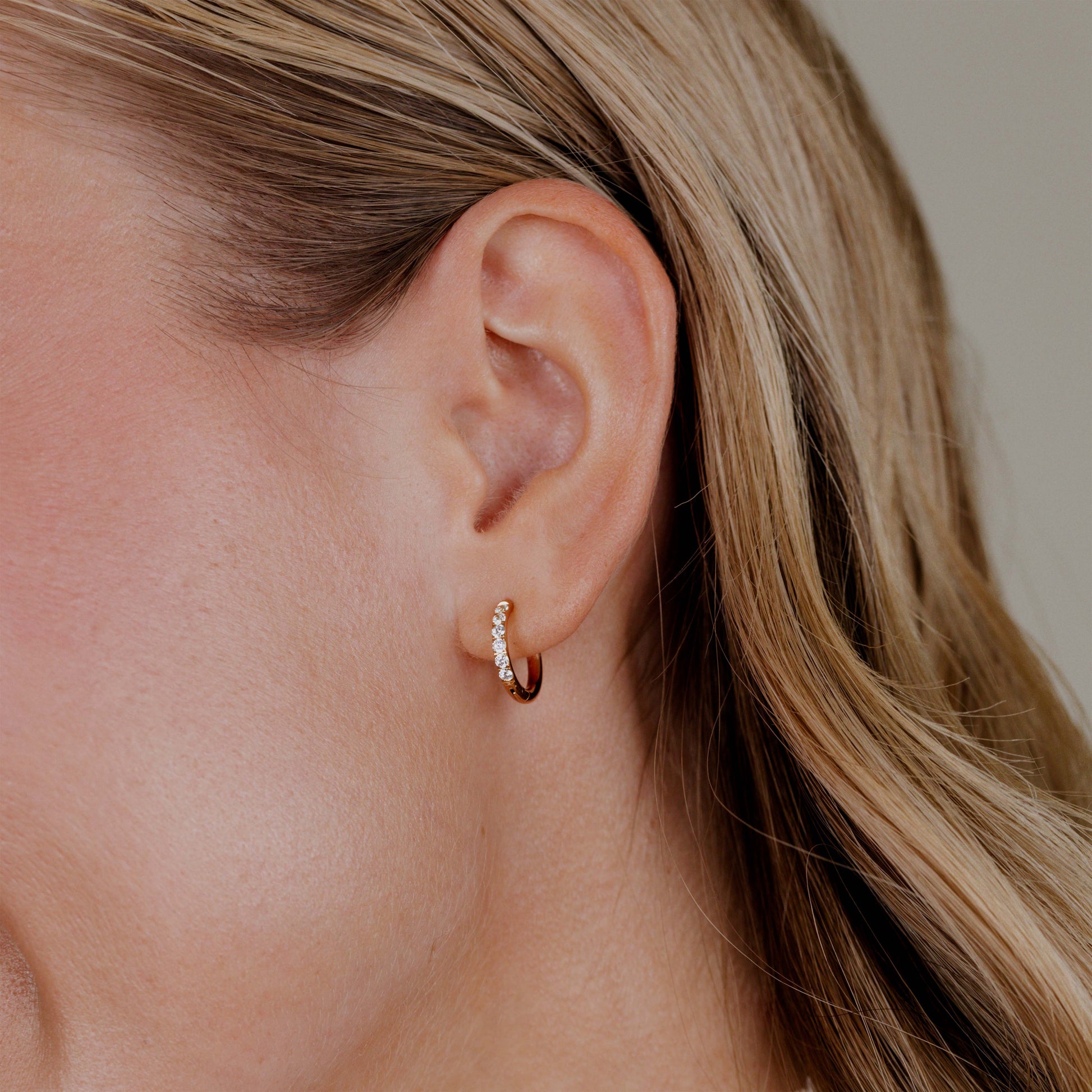 Missing a bit of sparkle, a bit of glam in your life? With our 'Glimmer Hoops' available in Baby and Small sizes, this problem is solved in no time! The delicate cubic zirconia stones turn these otherwise simple hoops into a real eye-catcher, transforming each of your looks into a sparkling highlight. Wear them alone or mix them with different hoops, studs, or charms for your own unique Ear Candy style!