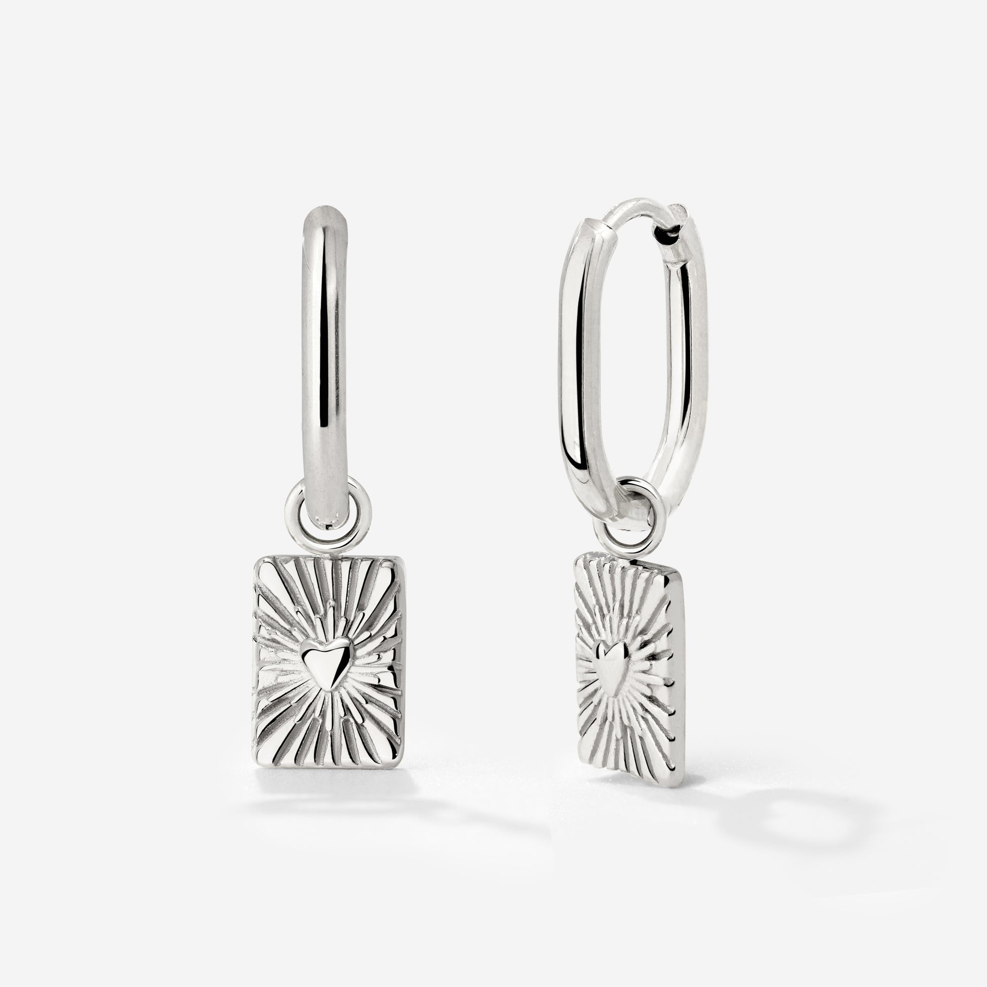 Unser “Glowing Heart” Oval Hoop Set Baby sieht aus, als wäre es direkt einer alten Schatztruhe entsprungen, bevor es zu deinem neuen Lieblings-Piece wurde! Die eleganten ovalen Hoops unterstreichen das zarte Design der rechteckigen Charms mit kleinem Herz in der Mitte. Von ihm fließen Linien nach außen, die an Sonnenstrahlen erinnern und dem Schmuckstück einen dreidimensionalen Touch verleihen. Trage die Ohrringe als kleinen Self-Love Reminder oder schenke sie deiner besten Freundin als Zeichen deiner Wertschätzung.