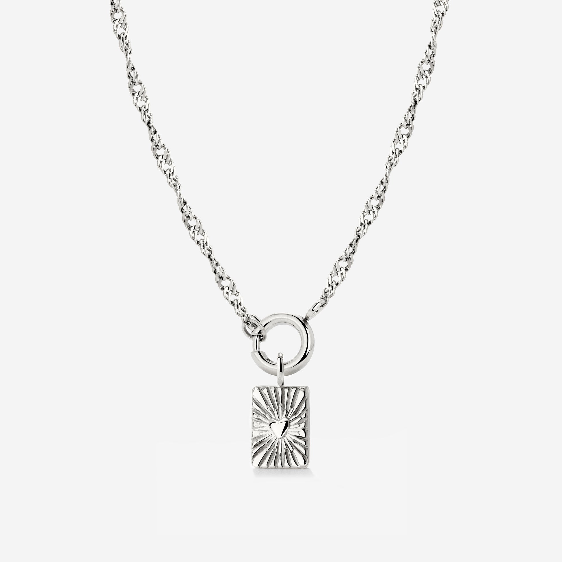 Glowing Heart Singapore Chain Necklace Set Silber