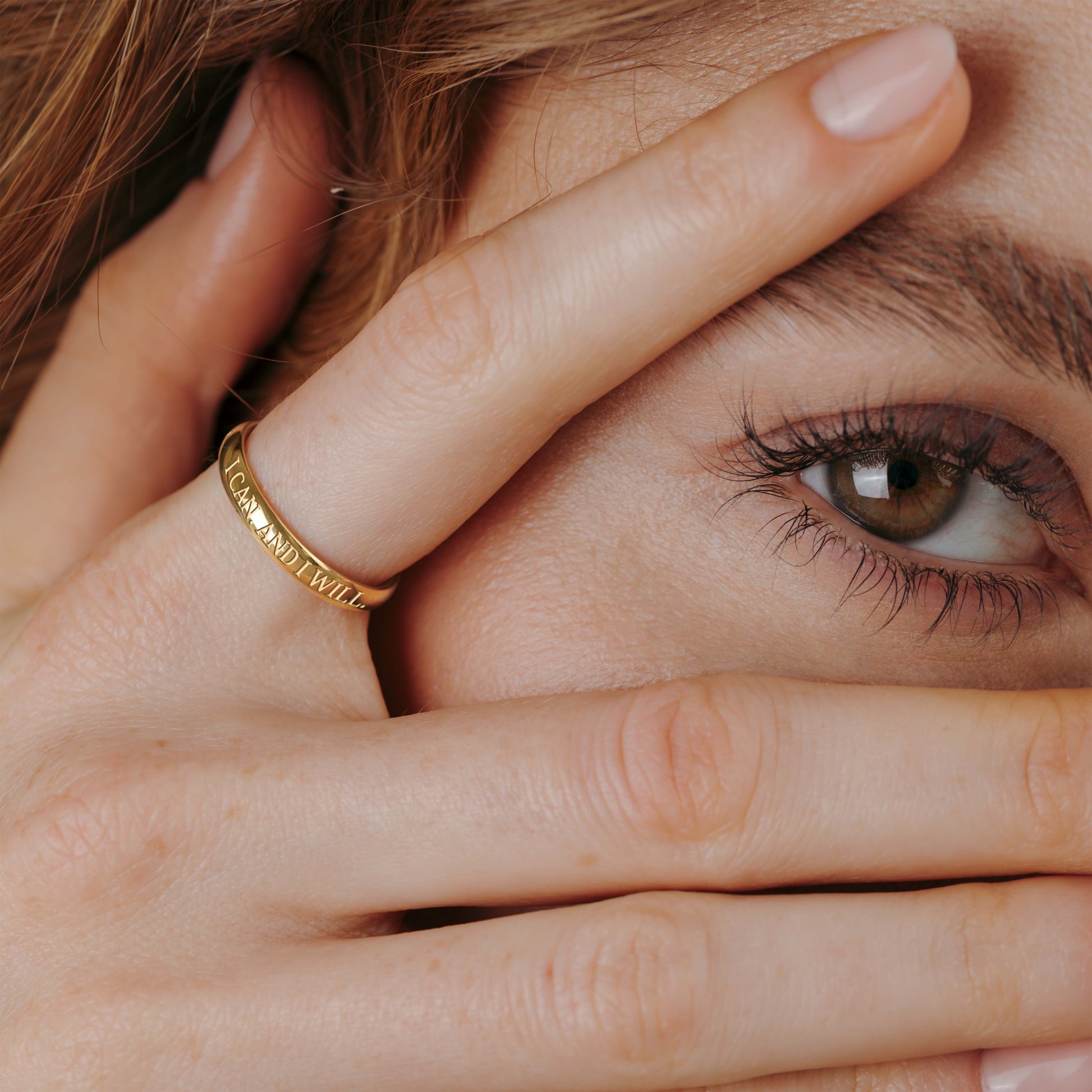 No matter the situation, our “I can. And I will” ring is here to remind you that you can achieve anything. The slim ring carries an important message, symbolizing your strength, perseverance, and determination. You can do it, and you will succeed, no matter what obstacles arise—repeat it like a mantra. Worn alone or stacked with our other rings, this piece is not only your hidden message but also an all-rounder for any style and look.