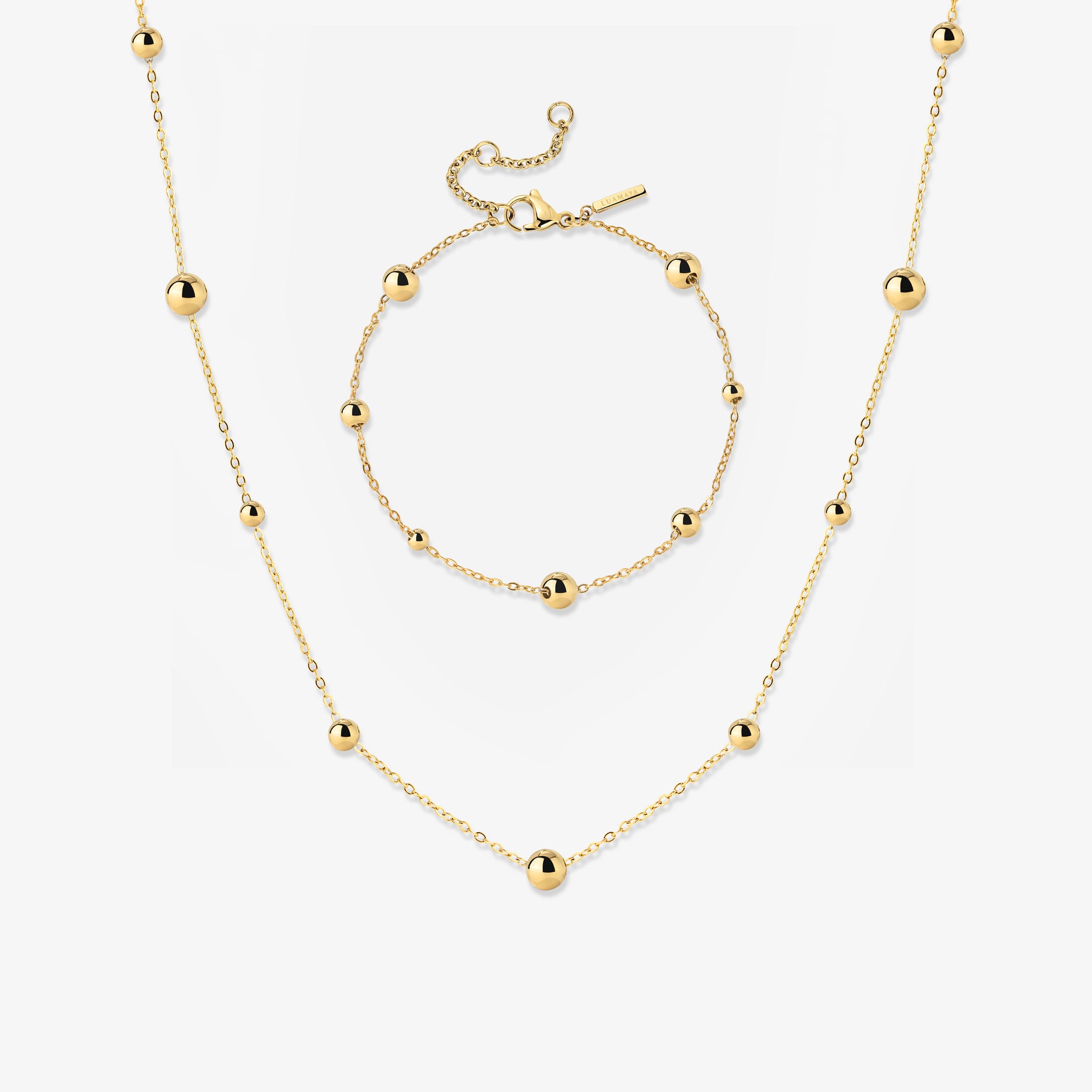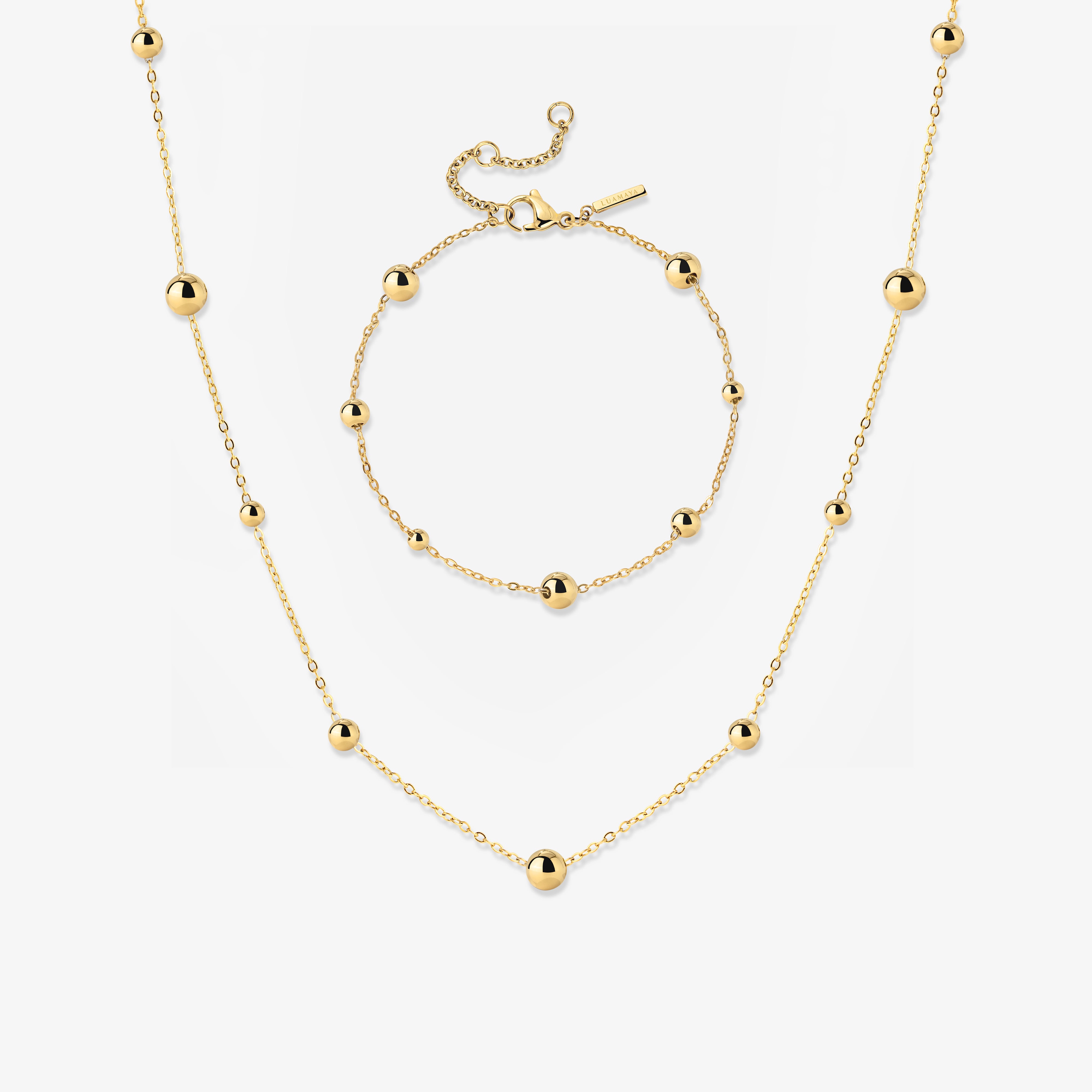 Unterschiedlich große Beads verzieren die filigranen Chains in regelmäßigen Abständen und geben sowohl unserer “Infinite Beads” Necklace als auch unserem “Infinite Beads” Bracelet einen verspielten, aber dennoch dezenten und minimalistischen Look. Als “Infinite Beads” Bundle bekommst du beide Schmuckstücke gleich zusammen und kannst sie als perfect Match ganz leicht miteinander kombinieren, ohne dir viele Gedanken um deinen Look machen zu müssen. Diese Pieces passen zu jedem deiner Outfits und zu jedem Anlass, ob im Alltag oder für besondere Anlässe!