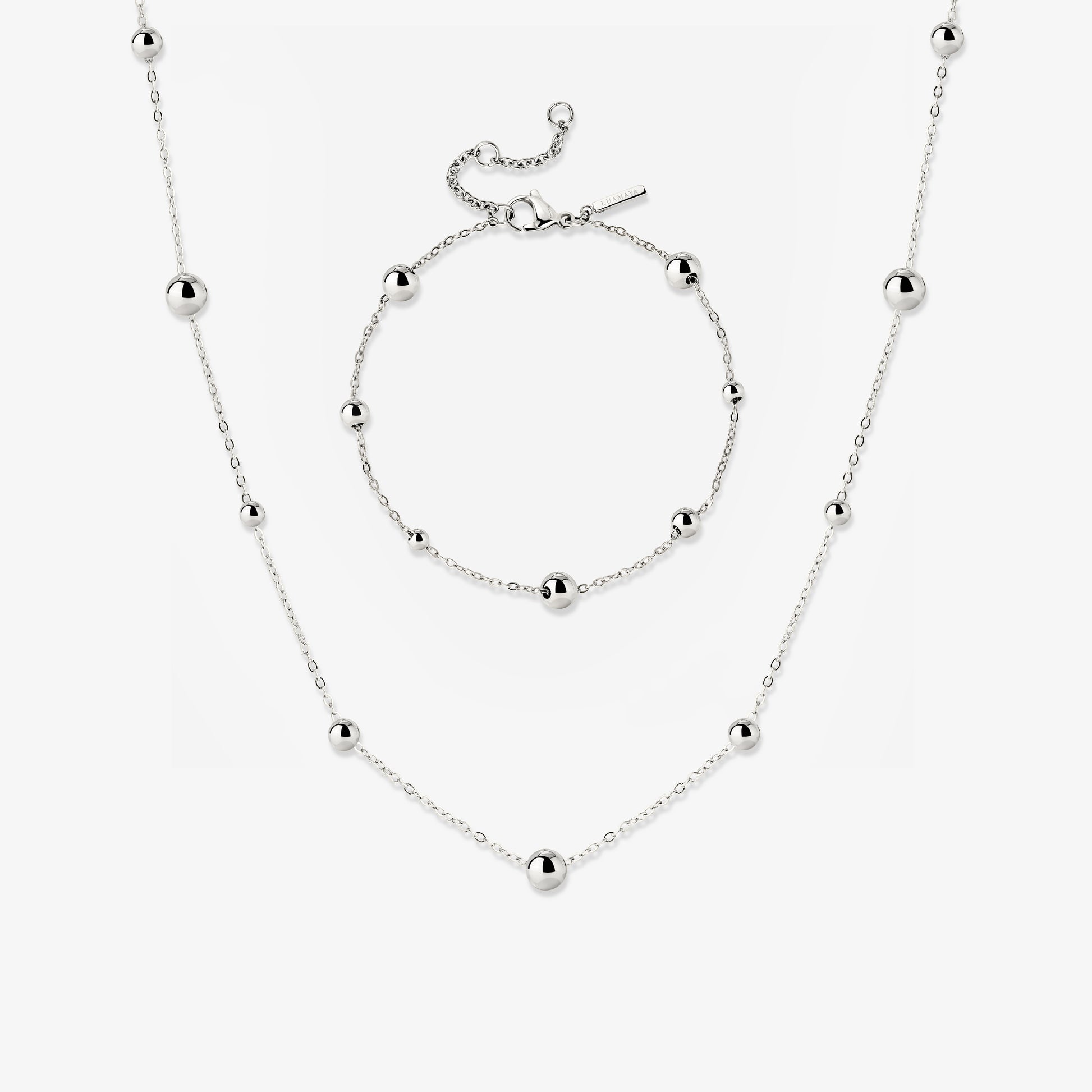 Unterschiedlich große Beads verzieren die filigranen Chains in regelmäßigen Abständen und geben sowohl unserer “Infinite Beads” Necklace als auch unserem “Infinite Beads” Bracelet einen verspielten, aber dennoch dezenten und minimalistischen Look. Als “Infinite Beads” Bundle bekommst du beide Schmuckstücke gleich zusammen und kannst sie als perfect Match ganz leicht miteinander kombinieren, ohne dir viele Gedanken um deinen Look machen zu müssen. Diese Pieces passen zu jedem deiner Outfits und zu jedem Anlass, ob im Alltag oder für besondere Anlässe!