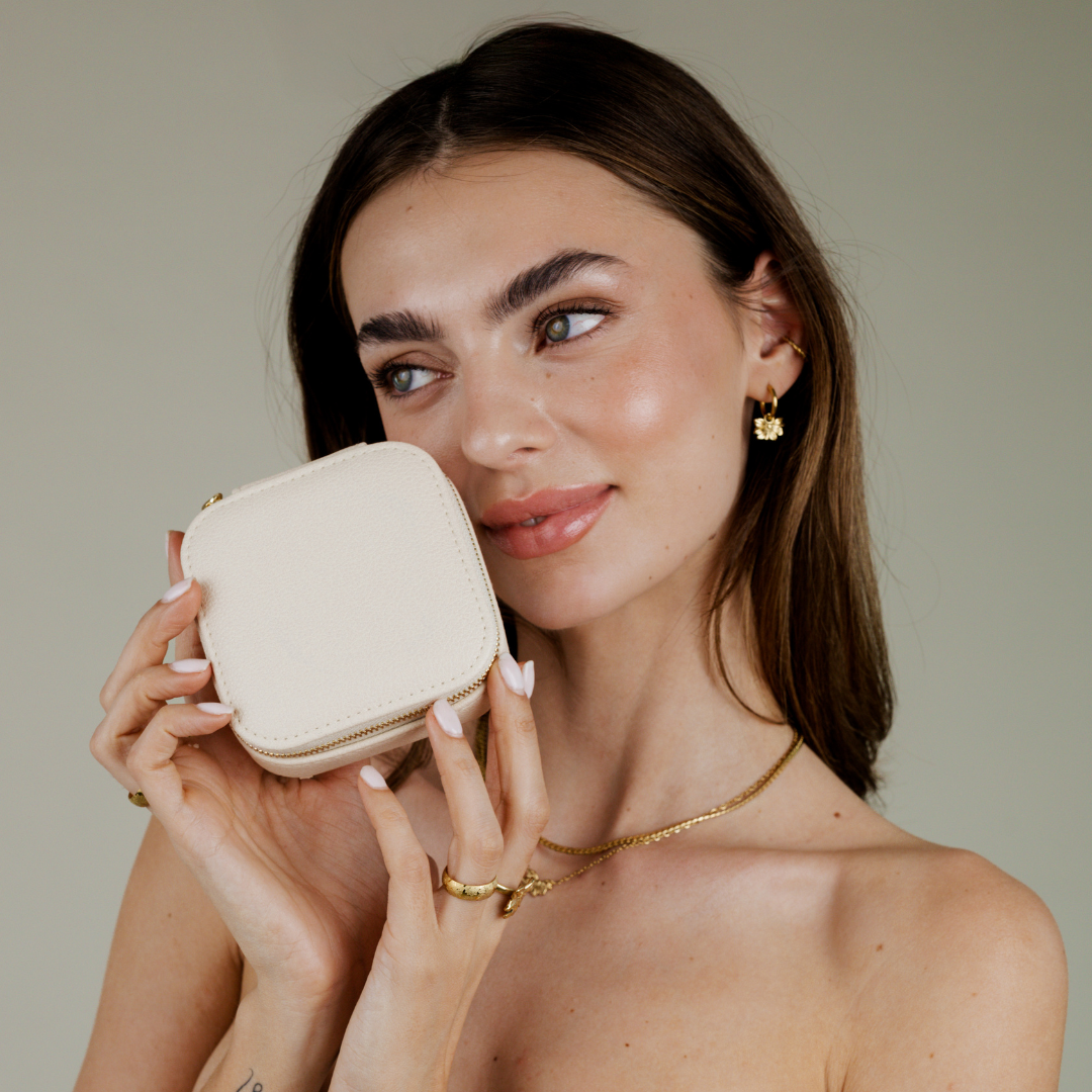 Who doesn’t know the struggle? You’re traveling and want to wear that one necklace, but what you find in your suitcase is a tangled mess of jewelry. Not in the mood for that anymore? We got you! With our Jewelry Organizer, this problem is a thing of the past. Whether it’s rings, hoops, studs, necklaces, or bracelets, every piece has its perfect place to keep your treasures safe during transport.