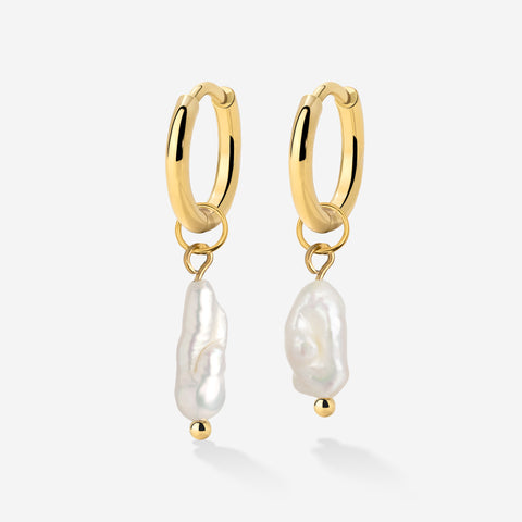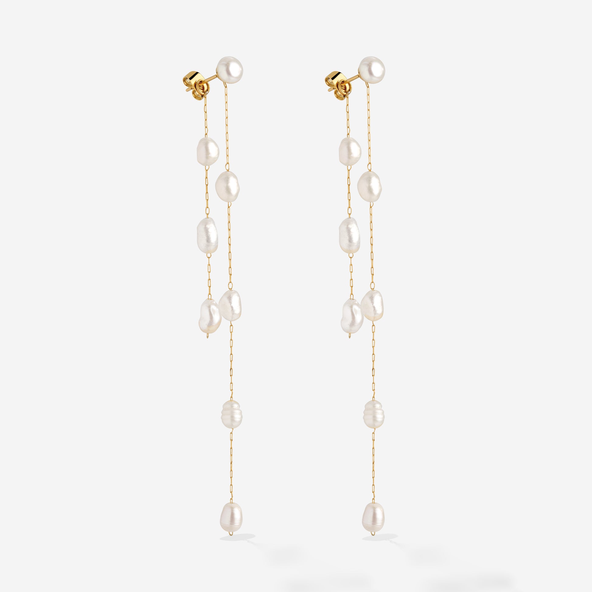 Pure elegance captured in one earring? Sounds like Lola's 'Jules Unique Pearl Fall Studs.' The super delicate chain combined with the small, individually shaped freshwater pearls makes this earring truly special. The shorter pendant hangs in front of the earlobe, while the longer element dangles behind it. This creates a beautiful depth and a unique, elegant design.