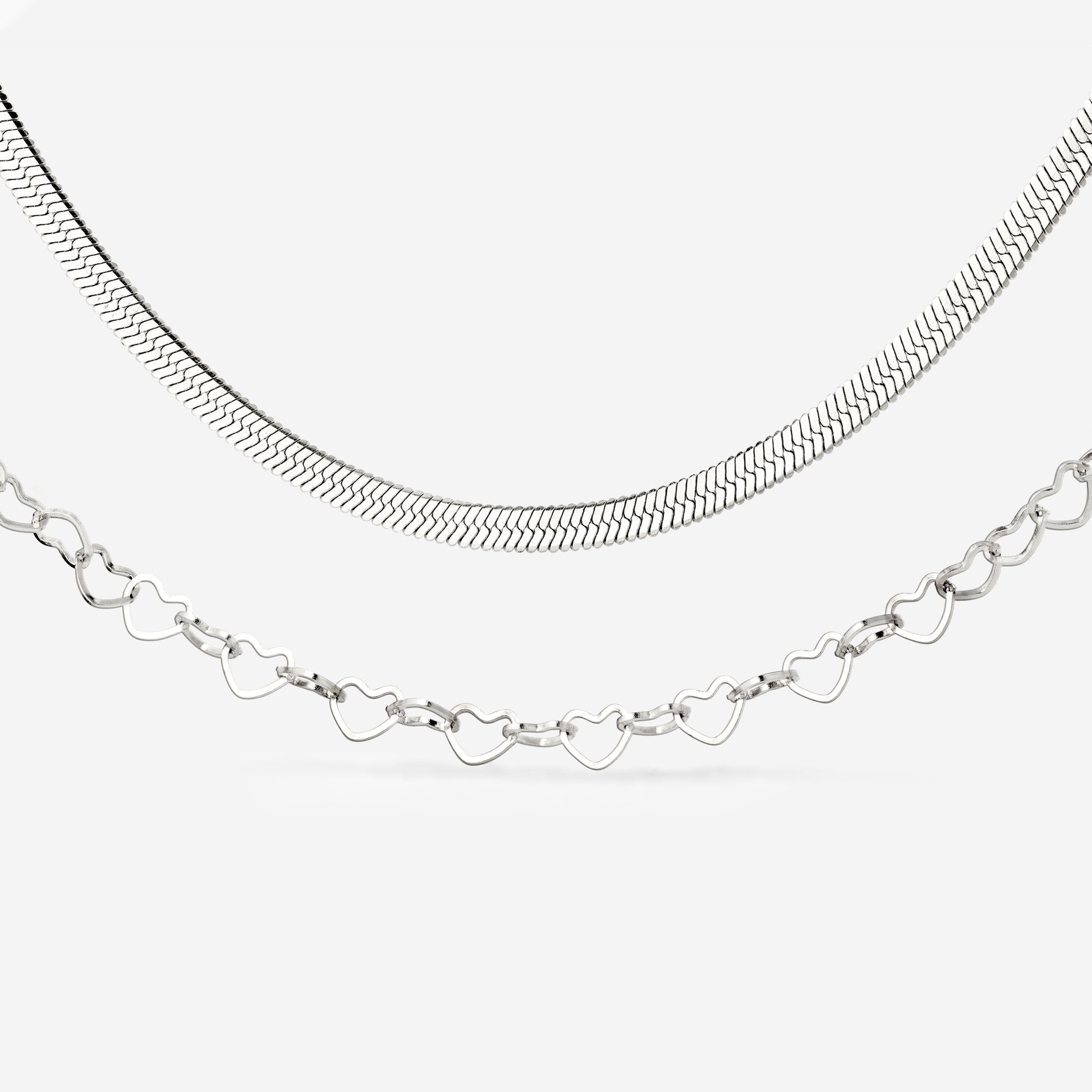Layering necklaces doesn’t have to be complicated or flashy, and our “Just Love” bundle gets your look ready to go. Both our “Heart after Heart” necklace, made up of small hearts, and our “Slim Herringbone” necklace with its classic herringbone design are subtle and timeless. Worn together, the two necklaces complement and enhance each other, creating an elegant yet visually interesting look for everyday wear and any occasion.