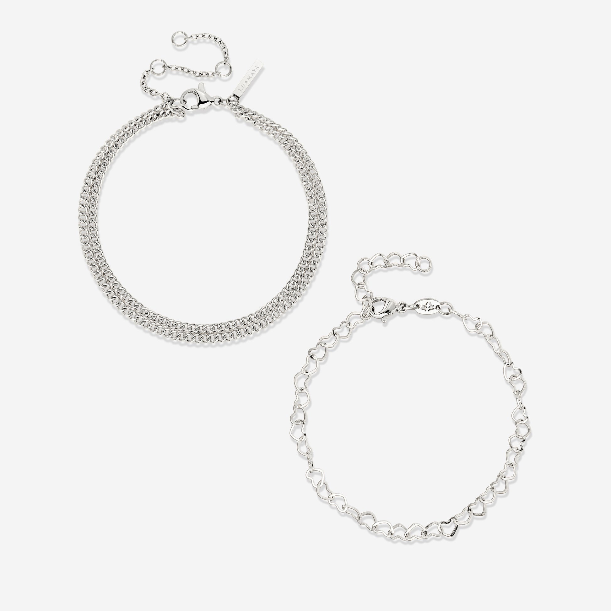 Layering doesn’t have to be complicated or flashy, and our “Light-hearted” bundle gets your look ready to go. Both our “Heart after Heart” bracelet, made of small hearts, and our “Curb Chain” Double Bracelet with its classic interlocking links are subtle and timeless. Whether you wear them together on one wrist or one on each arm, the two bracelets complement and enhance each other, creating an elegant yet visually interesting look for everyday wear and any occasion.