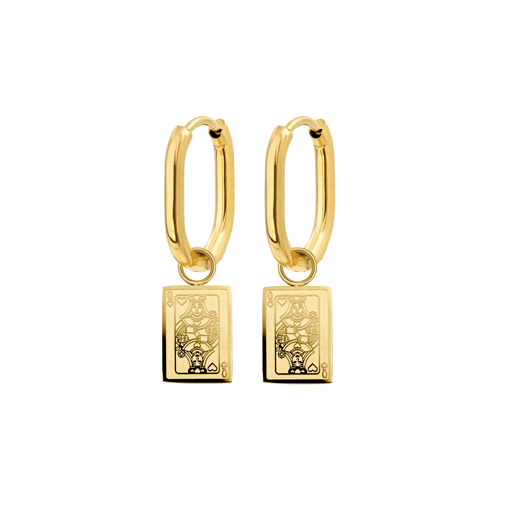 The Queen of Hearts symbolizes grace, elegance, and feminine strength in card games. She is an emblem of the power inherent in femininity. This makes our 'Like a Queen' Hoops a beautiful piece of symbolic jewelry with meaning. Treat yourself or your loved ones like a queen – they deserve it!