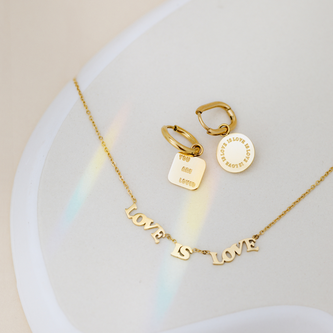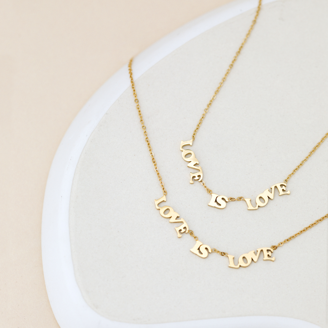 Make a statement for tolerance and acceptance with our “Love is Love” Necklace and always carry the important message with you that love in all its forms is welcome! The lettering is a statement in itself and, in celebration of Pride Month, symbolizes not only pride and support for the community but also its diversity and connection. No matter what your love looks like — Love is Love!