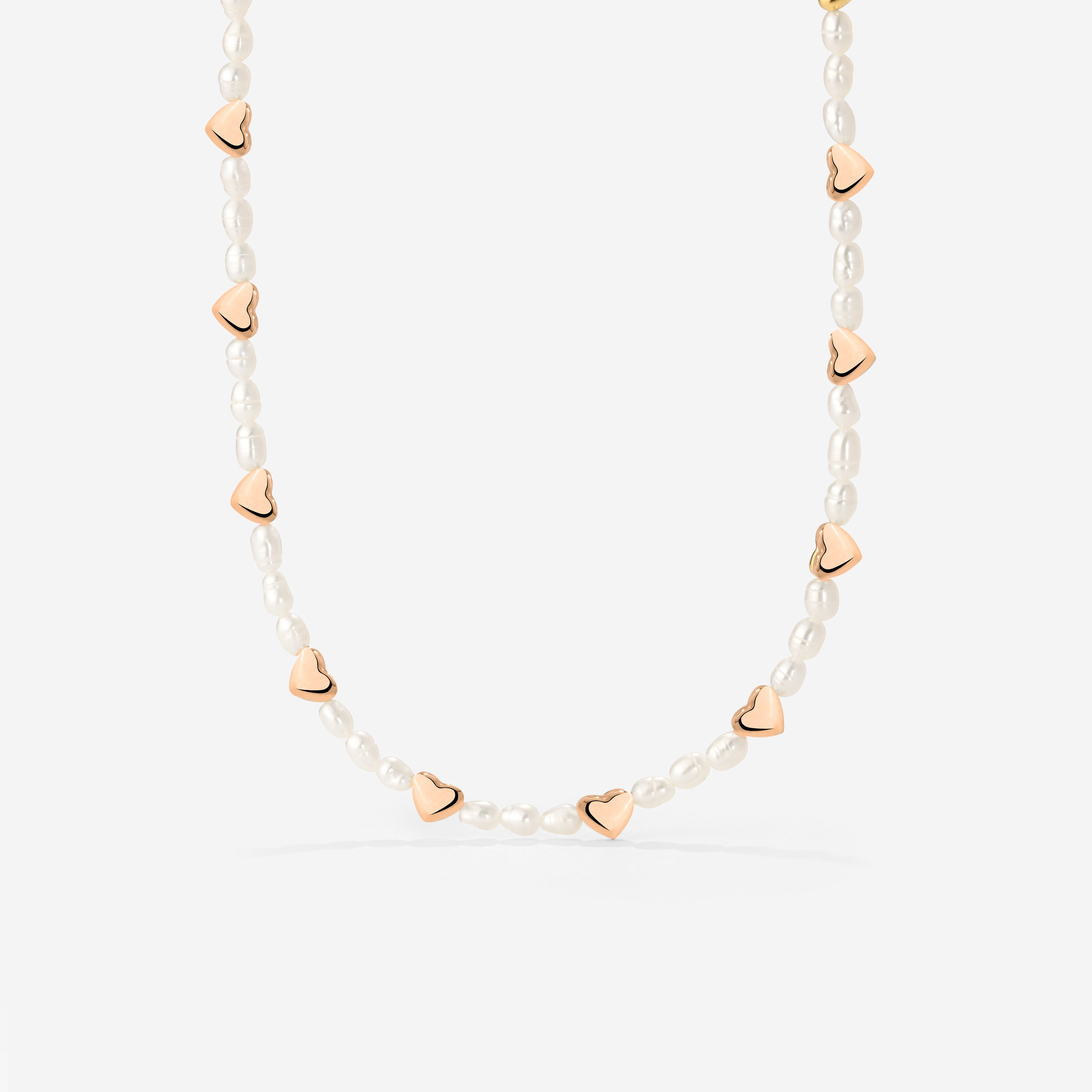 Freshwater pearls are a year-round jewelry staple, cherished for their timeless elegance and constantly reimagined in new trends and designs. Our “Love Pearls” necklace features unique pearls arranged in groups of three, alternating with tiny heart charms that add a playful and cute touch. If you’re looking for a more modern and relaxed take on the classic pearl necklace, this piece is the perfect choice to bring a fresh vibe to your collection!