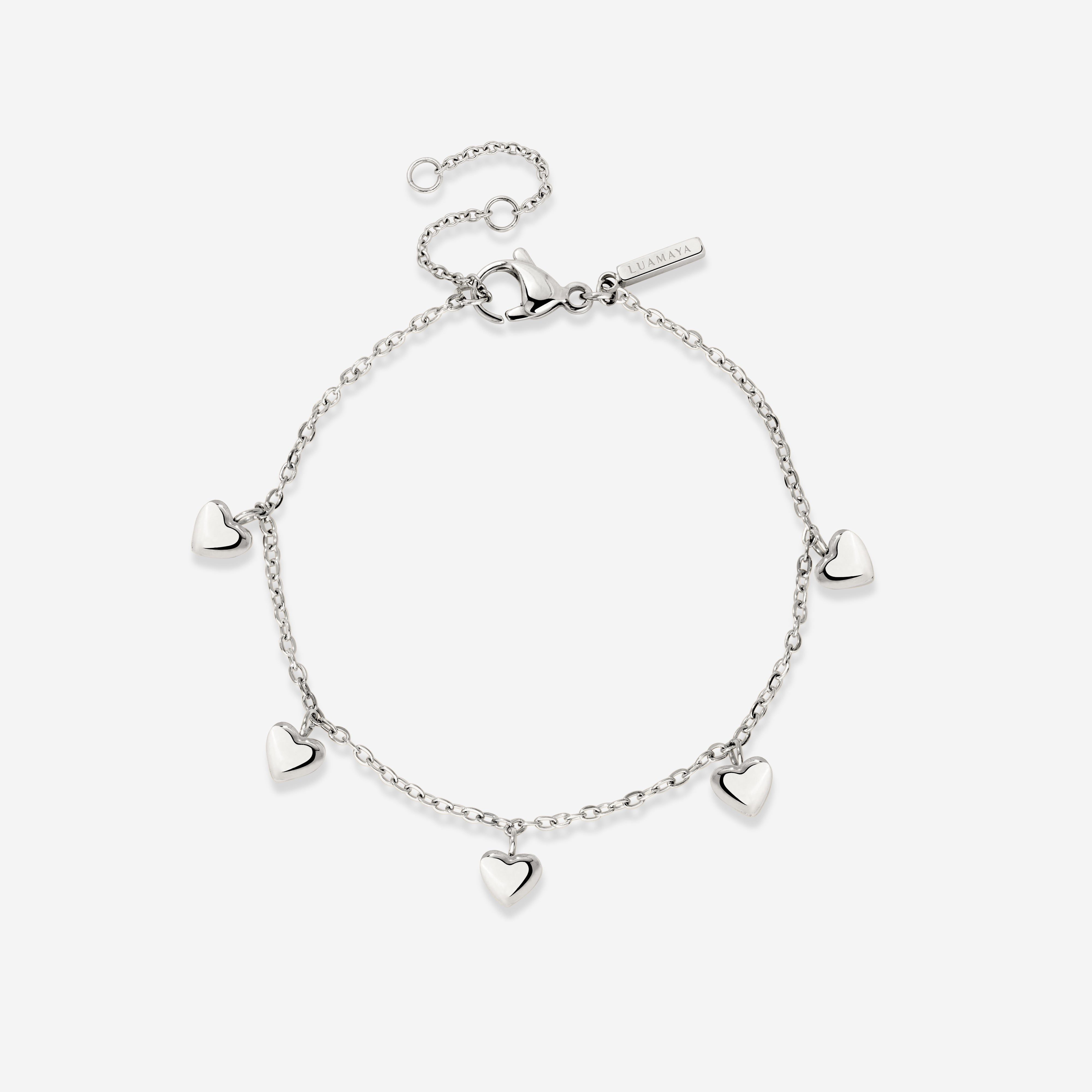 As the days grow colder and darker, our “Lovely Heart” bracelet brings you warmth, love, and good vibes! The delicate chain with its five tiny heart charms is the perfect way to welcome winter with positivity and enjoy it fully. Every time you wear this bracelet, you won’t be able to help but smile — and you’ll find yourself reaching for it again the next day. Wear it on its own for a cute, minimalist look, or pair it with our other heart pieces for a playful touch.