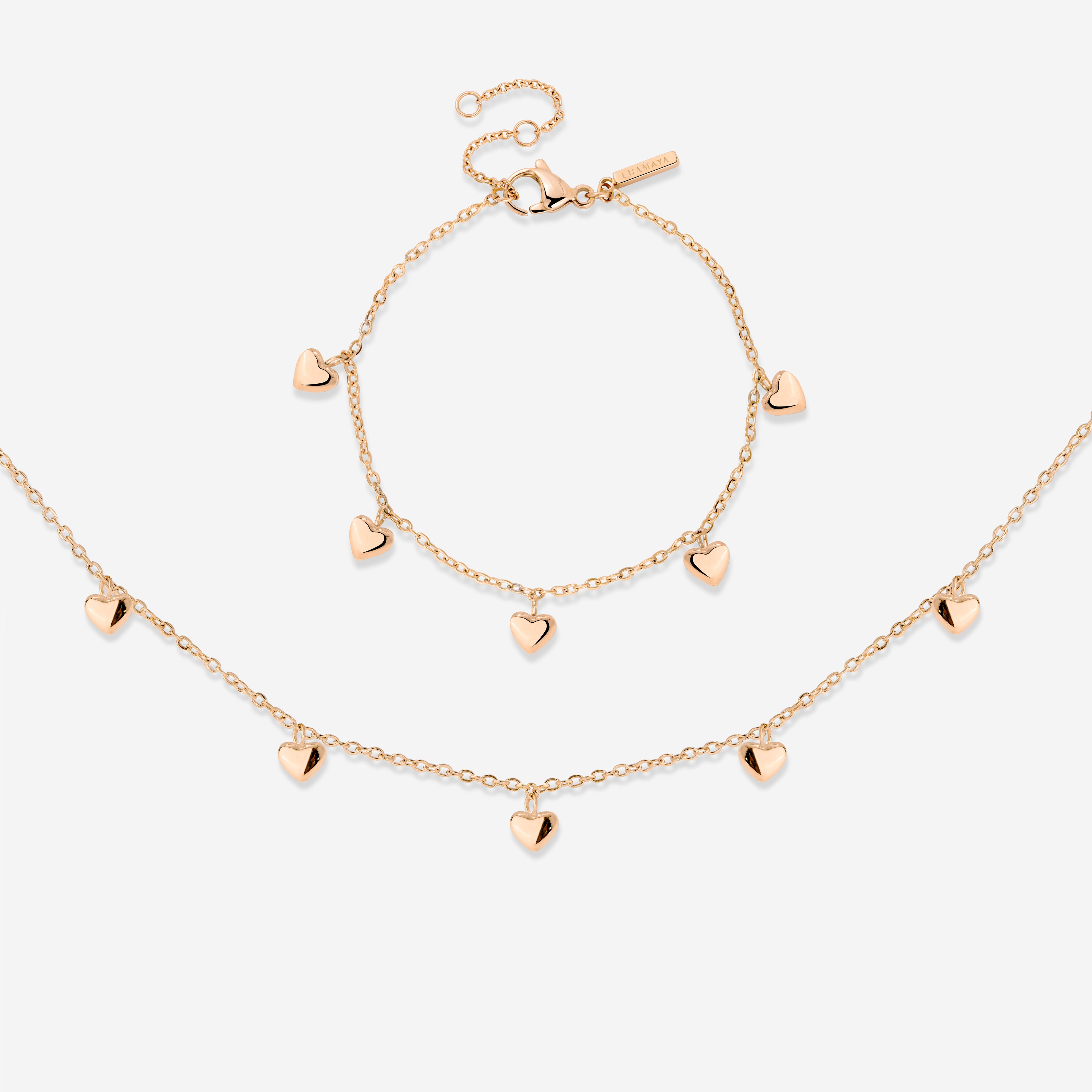 As the days grow colder and darker, our “Lovely Heart” choker brings you warmth, love, and good vibes! The delicate chain with its five tiny heart charms is the perfect way to welcome the winter season with positivity and a cheerful spirit. Every time you wear this necklace, you won’t be able to help but smile — and you’ll find yourself reaching for it again the next day. Wear the choker on its own for a cute yet minimalist look, or layer it with our other heart pieces for a playful touch.