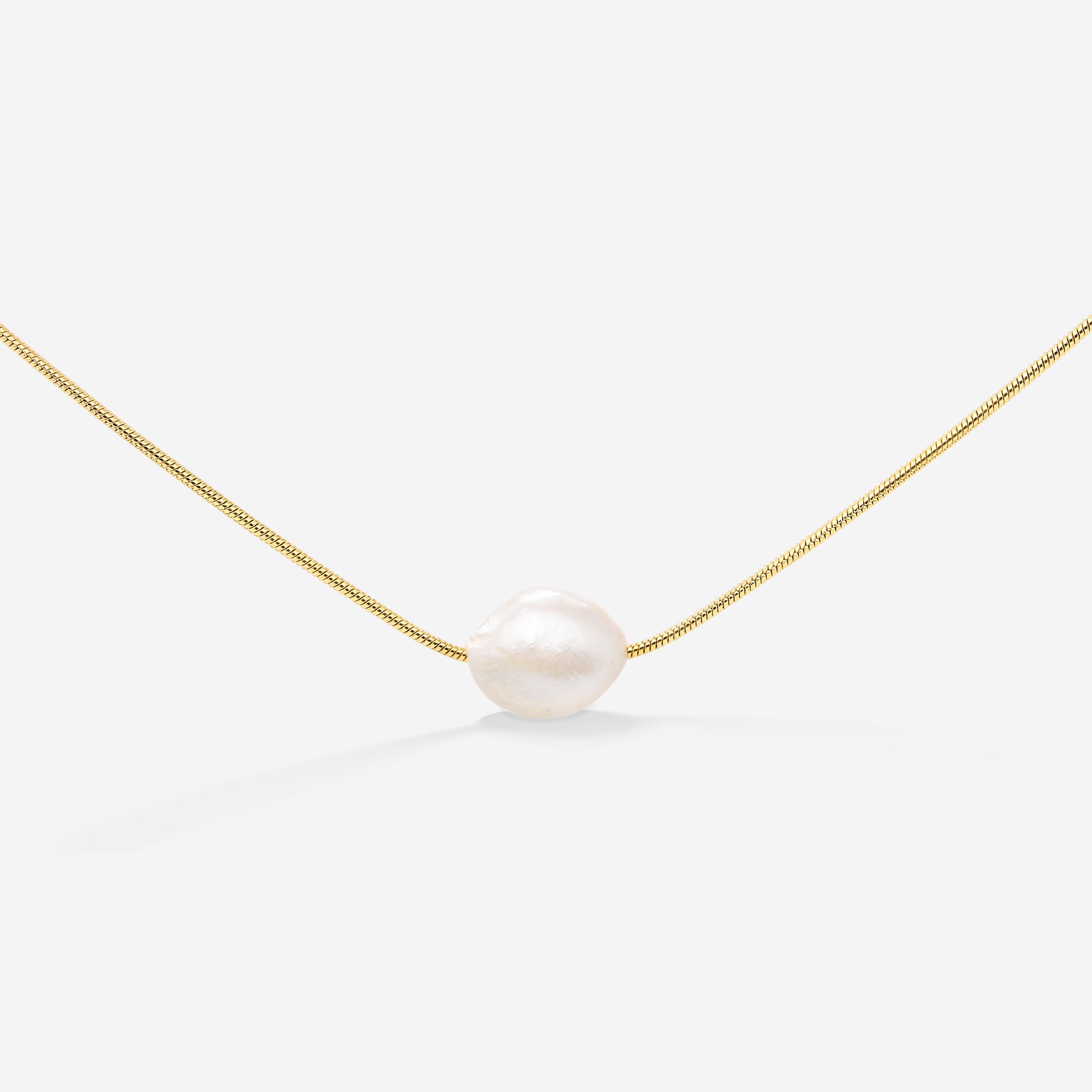 For those of you who don't want to miss the chunky and bold trend but usually prefer more subtle pieces, we have our stunning 'Minimalist Pearl' Necklace. The thin, round snake chain is simple, yet elegant and timeless, and the larger, high-quality freshwater pearl turns it into a true eye-catcher without overpowering you or your outfit. Whether worn alone or layered, this piece keeps you on-trend while staying true to your style – style it your way!
