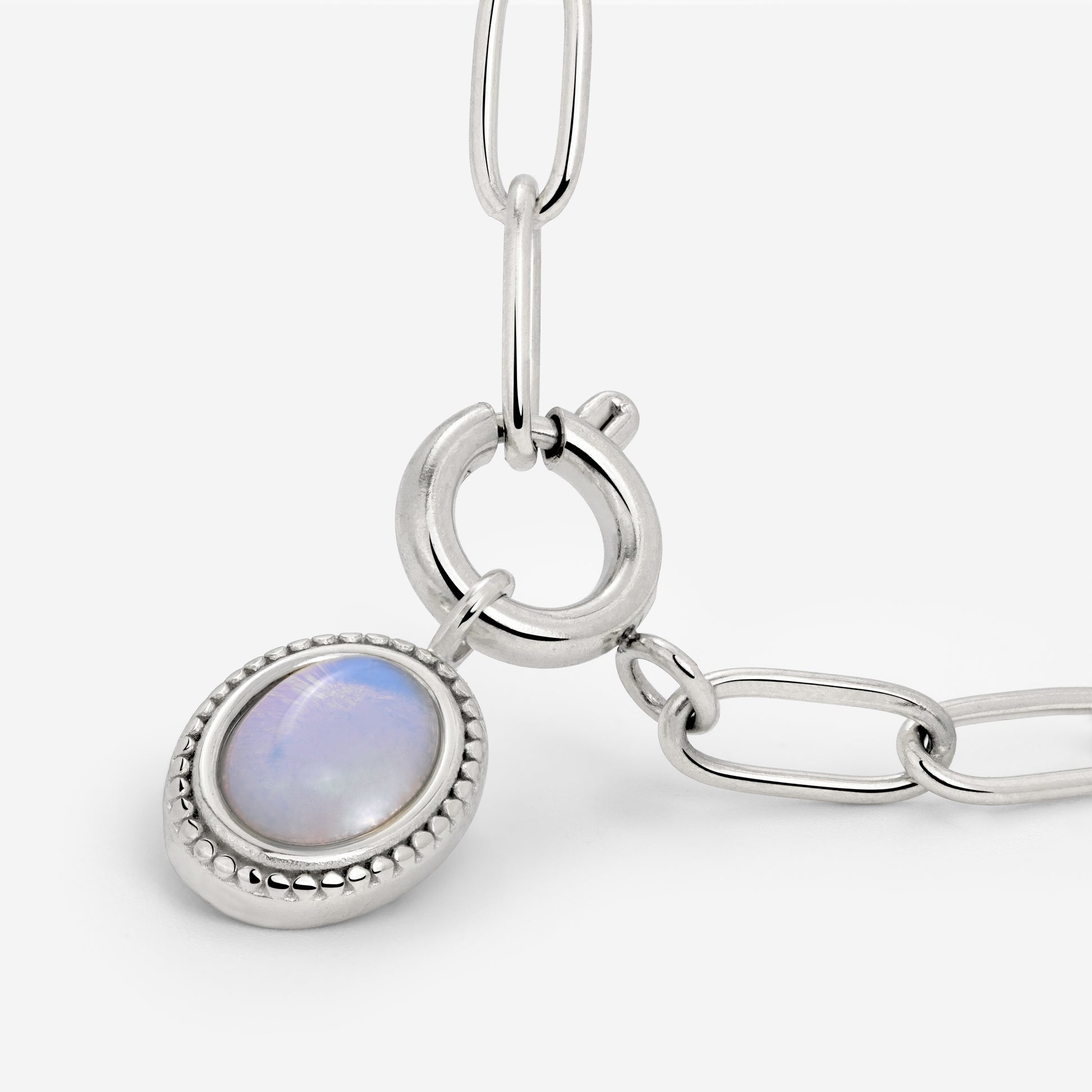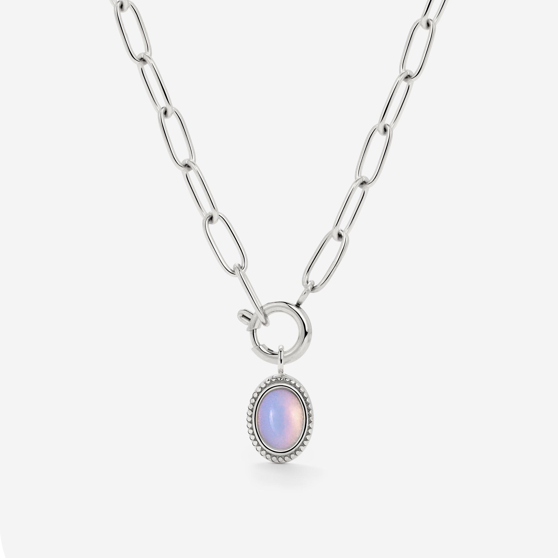 Opal is not only known for its colorful, iridescent play of colors and unique light reflection—it is also considered a protective stone that brings joy and harmony. Wear our 'Opaline' Oval Links Necklace Set with the opal charm and timeless, elongated chain as a guide to inner peace, love, and patience, and let its positive energy surprise you. Psst... Don’t miss out on our other shimmering natural stone charms, each with their own unique properties!
