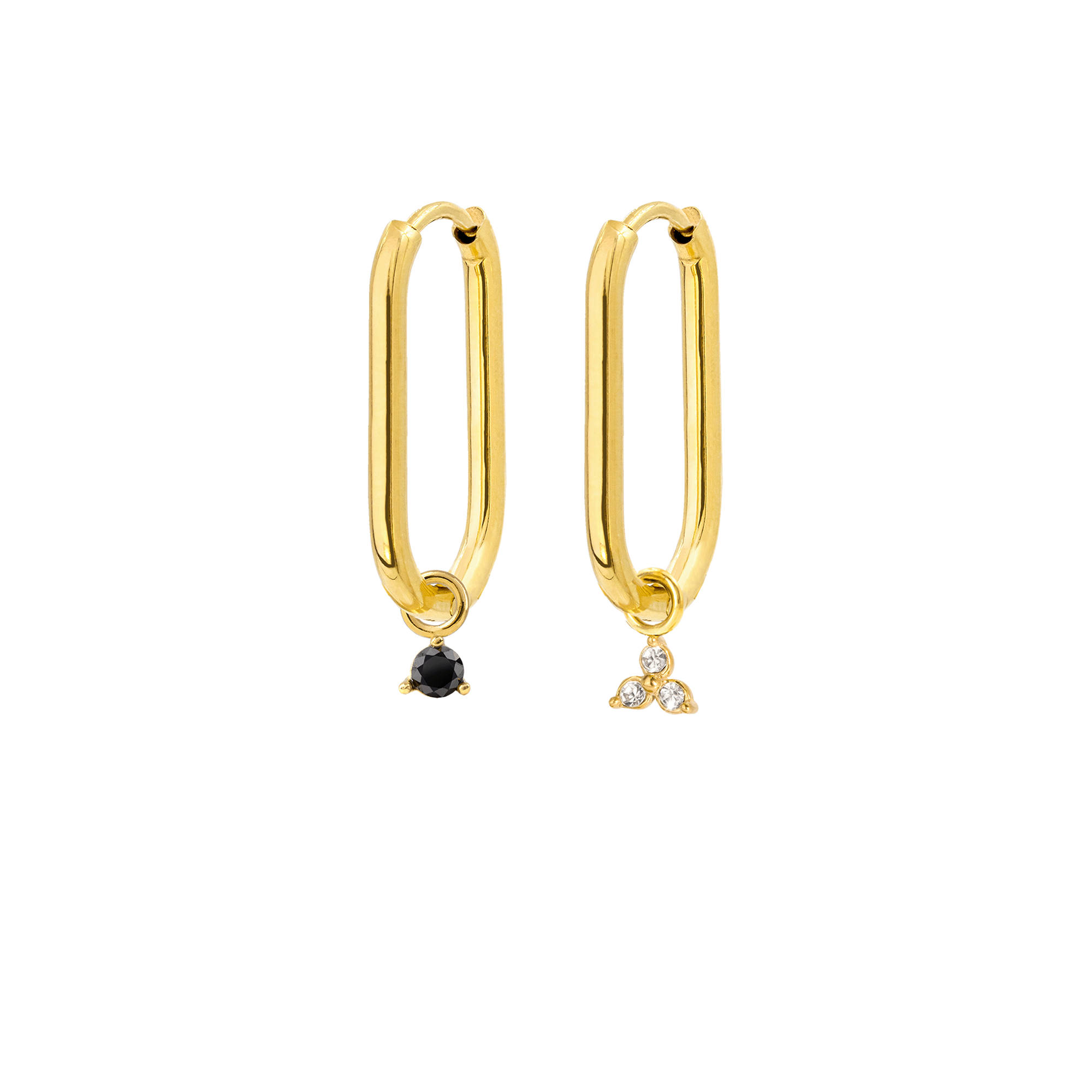 We love giving classic styles a modern twist. Our oval hoops radiate a certain extravagance through their long, angular shape with a simple and timeless charm. Thanks to their redesigned shape, you can add a fresh touch to your look. Why not customize your look too with the charms of your choice?!