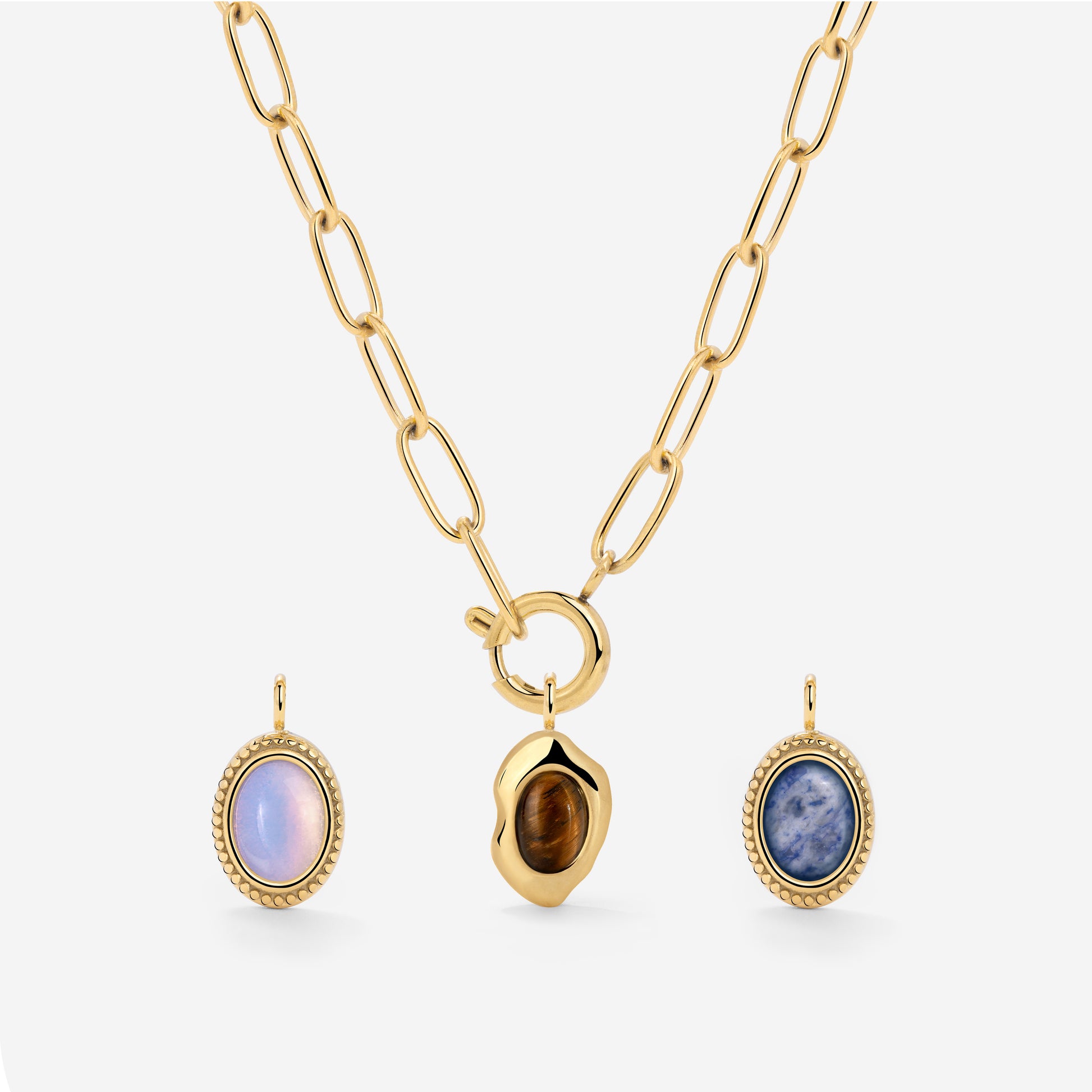 Oval Links Charm Necklace Set