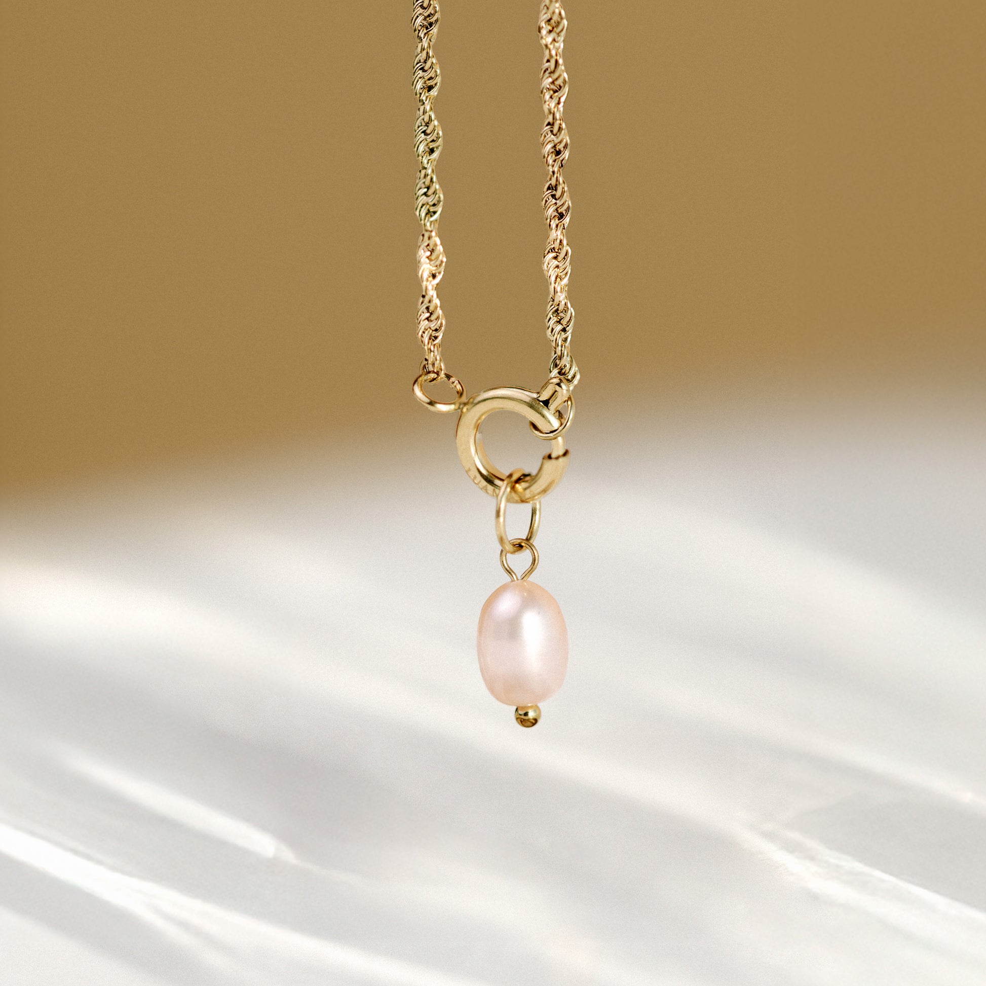 Do you want a piece of jewelry that feels like a little treasure, full of stories and evoking nostalgia? Then our “Perla Rosa” Rope Chain Necklace Set is perfect for you! The soft pink freshwater pearl gives the necklace a feminine, vintage charm and pairs beautifully with the romantic, twisted rope chain. The versatility of the charm makes this piece truly special—you can also easily attach it to hoops and decide for yourself which look you want to wear today! Whether elegant, playful, or modern, this set will accompany you through both everyday moments and special occasions.