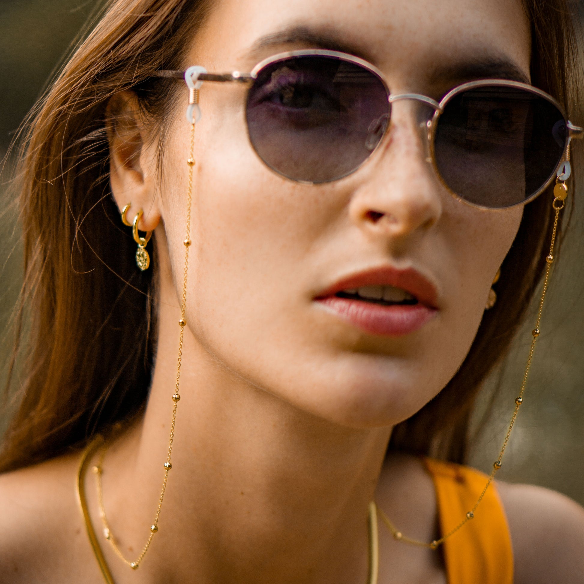 I wear my sunglasses at night – and with my playa sunglass chain! Our detailed chain can be perfectly combined with your sunglasses. The small beads turn a basic piece into a real favorite.