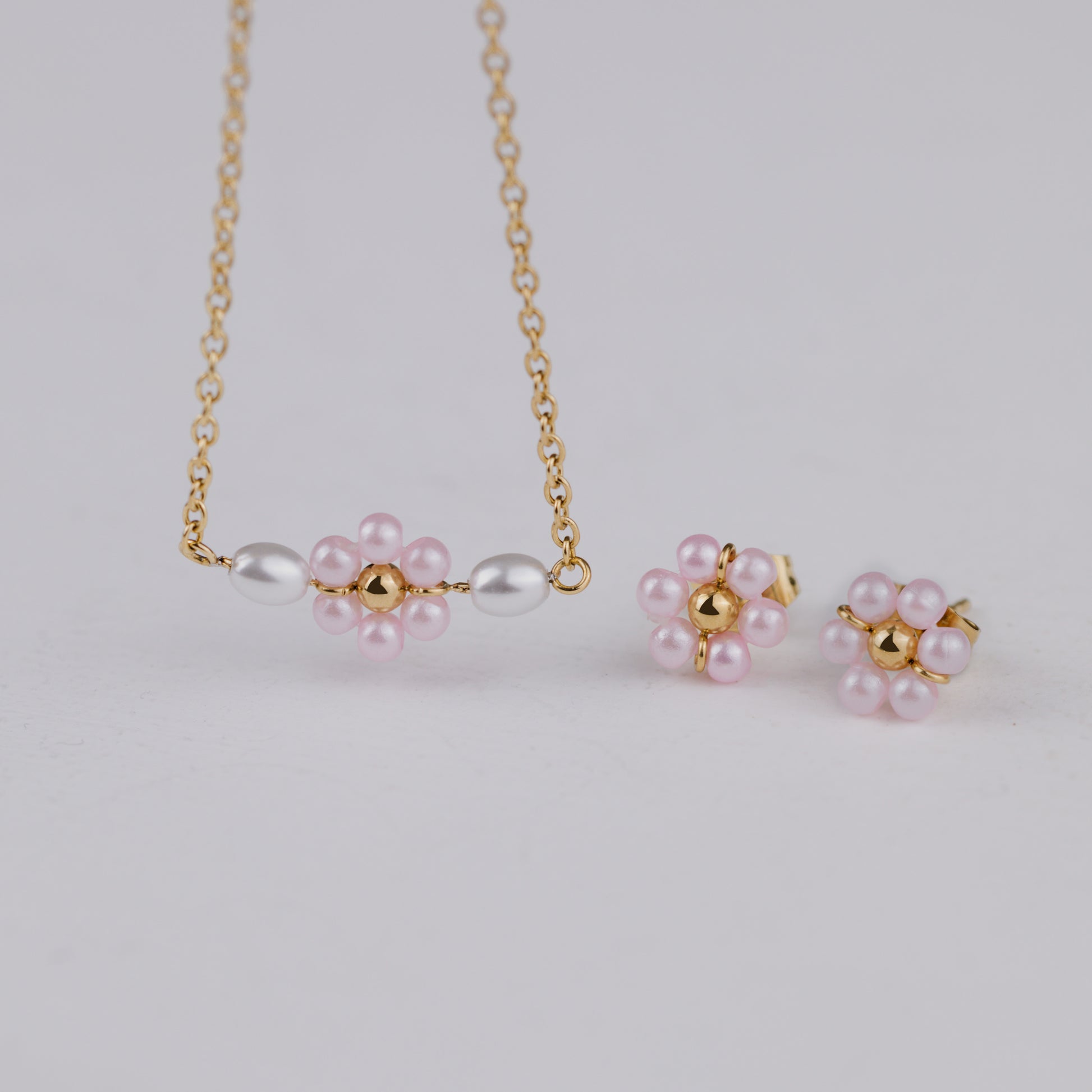 With our “Pretty Pink Daisy” Bundle, you get several floral highlights in one matching set. The recurring daisy shape made of synthetic pearls creates a harmonious overall look that instantly feels like spring. Our “Pretty Pink Daisy” Necklace and the matching “Pretty Pink Daisy” Studs together create a playful and feminine look. Wear the necklace and studs together or style them separately to keep adding new accents. You want to perfect your spring look and wear details that match? Then this bundle is exactly right for you!